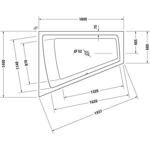 Duravit Paiova baignoire acrylique biseautée gauche 180x140x46cm blanc