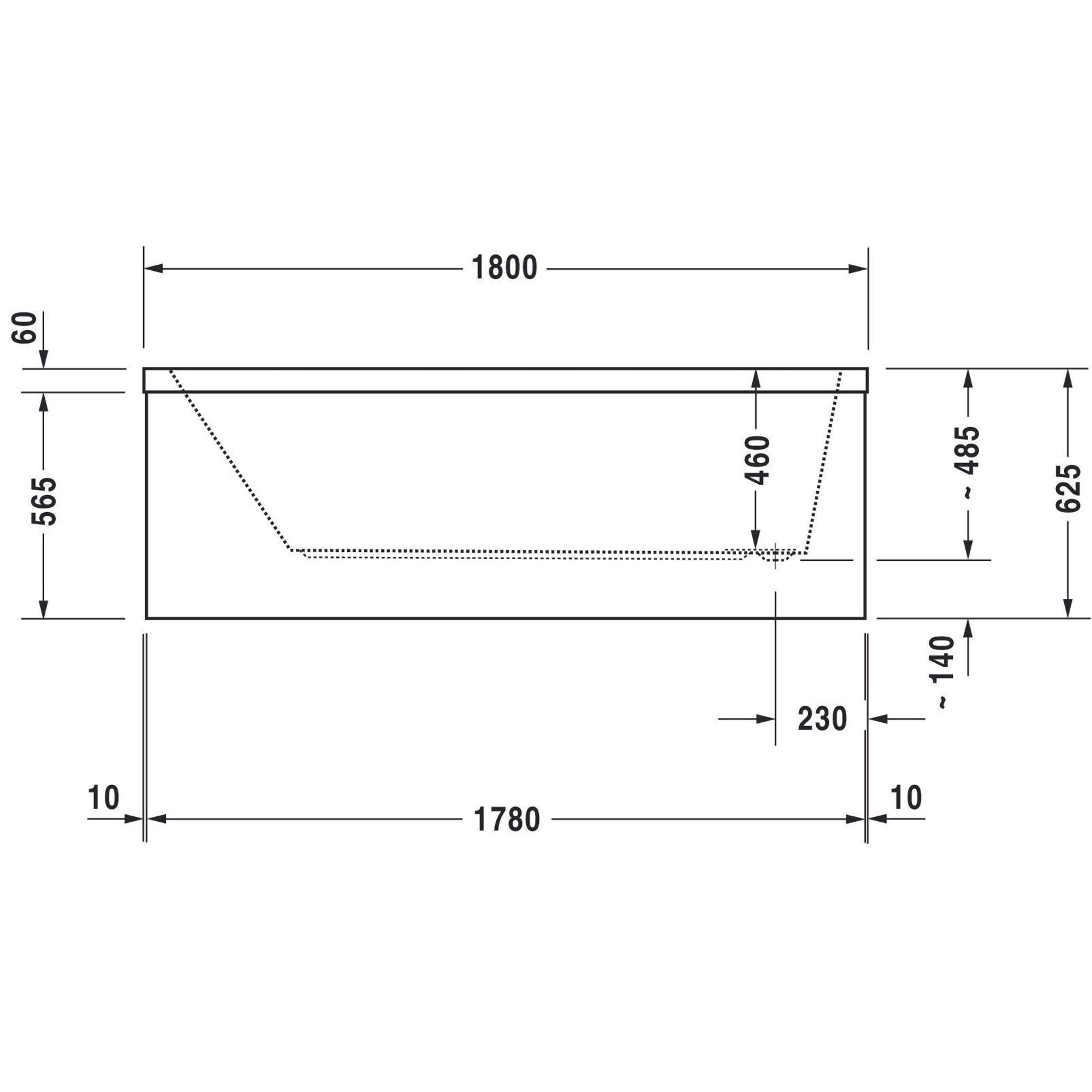 - Baignoire à encastrer spacieuse de 180x90 cm, idéale pour s'allonger confortablement de tout son long.