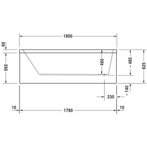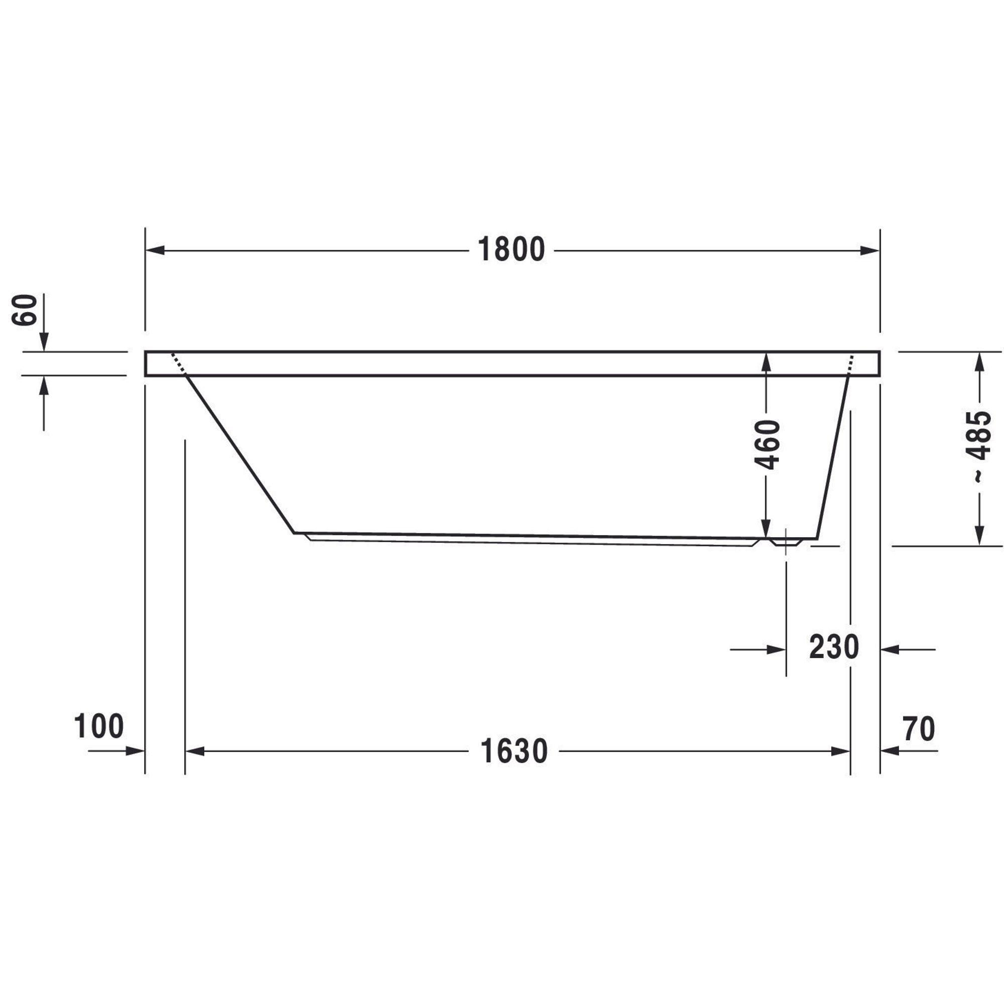 Duravit Starck 1 baignoire acrylique rectangulaire avec trop-plein avec 1 appui-dos 180x90x46cm à encastrer blanc