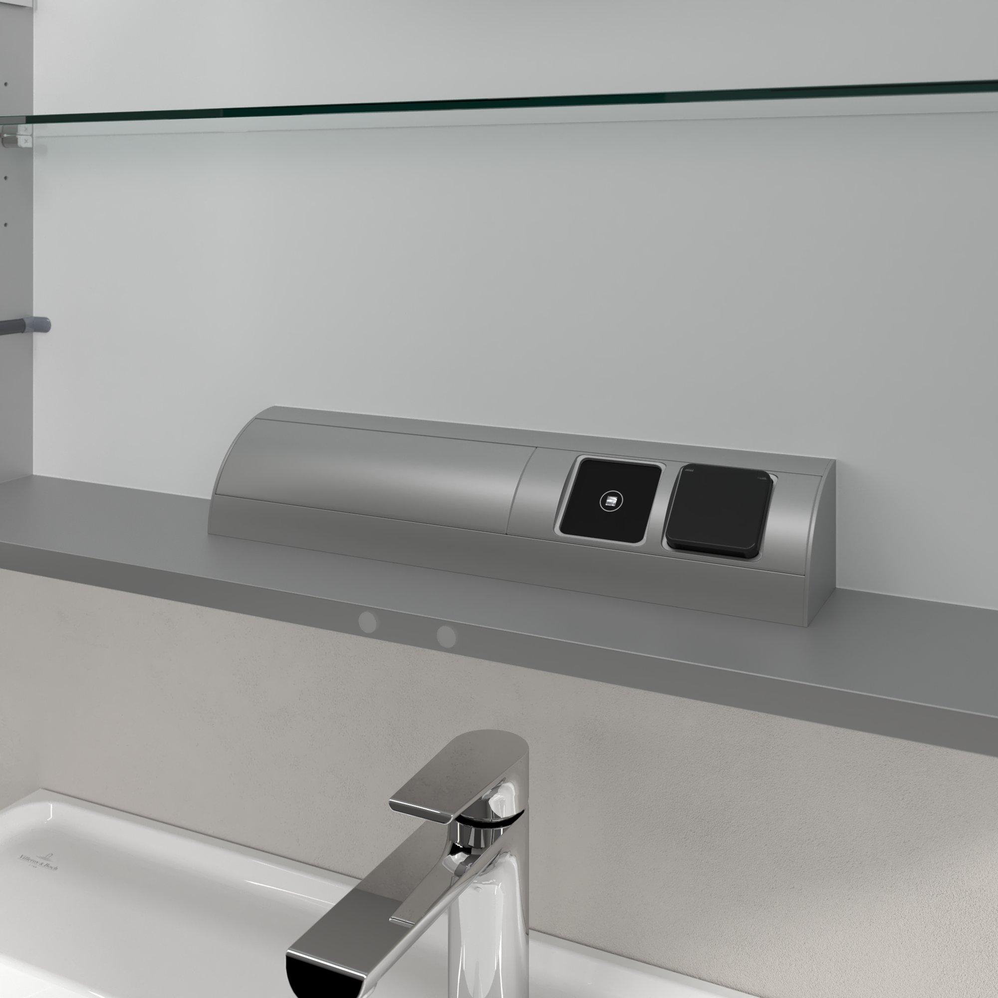 - Prise intégrée pour recharger les brosses à dents électriques ou brancher un sèche-cheveux et un rasoir