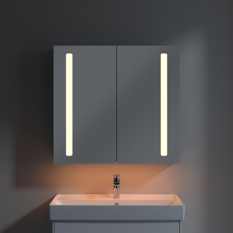 - Éclairage de vasque intégré supplémentaire, rendant superflus les luminaires séparés au-dessus du miroir