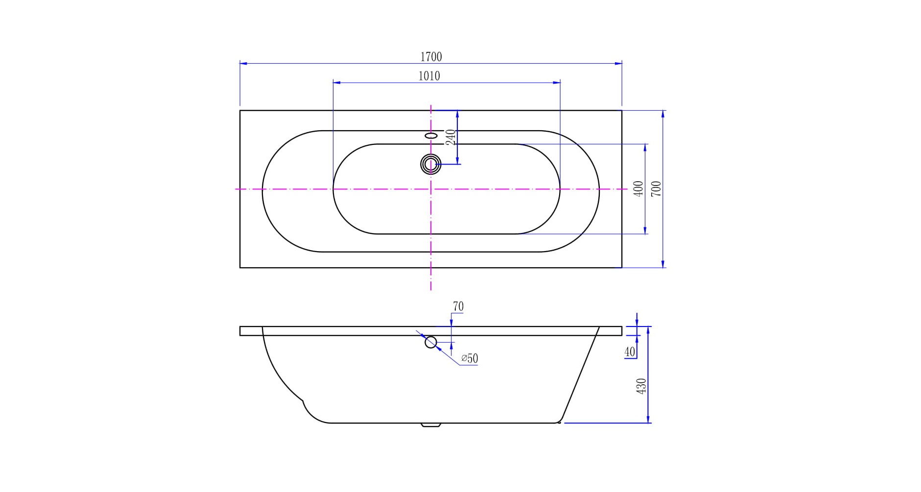 Zeza Stuttgart Baignoire standard 170x70cm rectangulaire Blanc