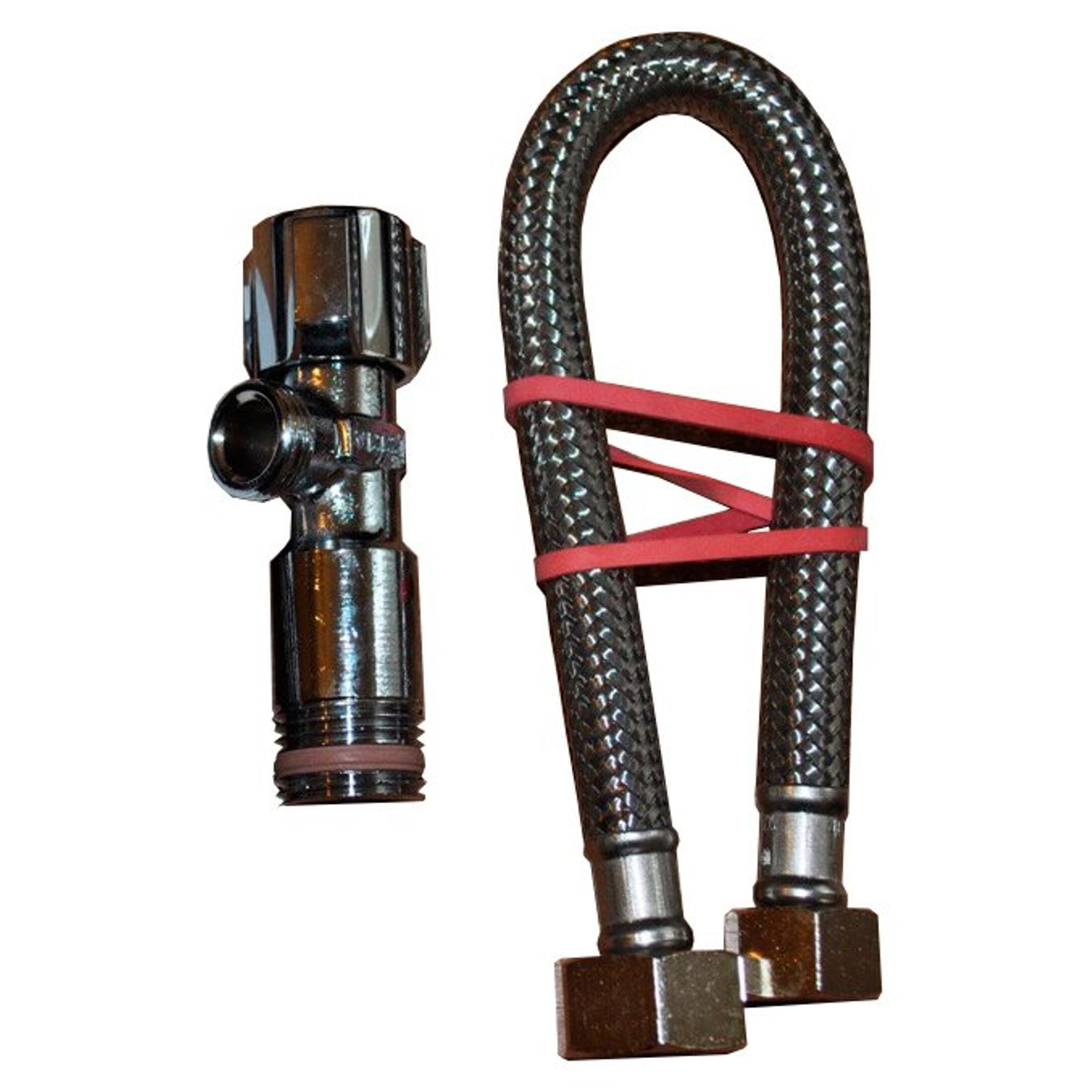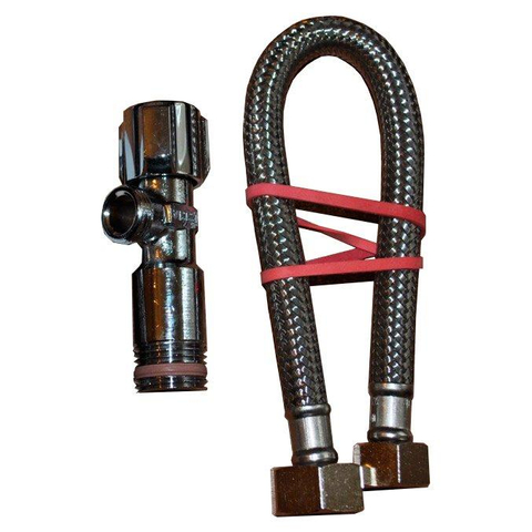 - Ensemble complet de raccordement d'eau avec robinet d'arrêt d'angle et flexible de raccordement pour une installation rapide et sûre.