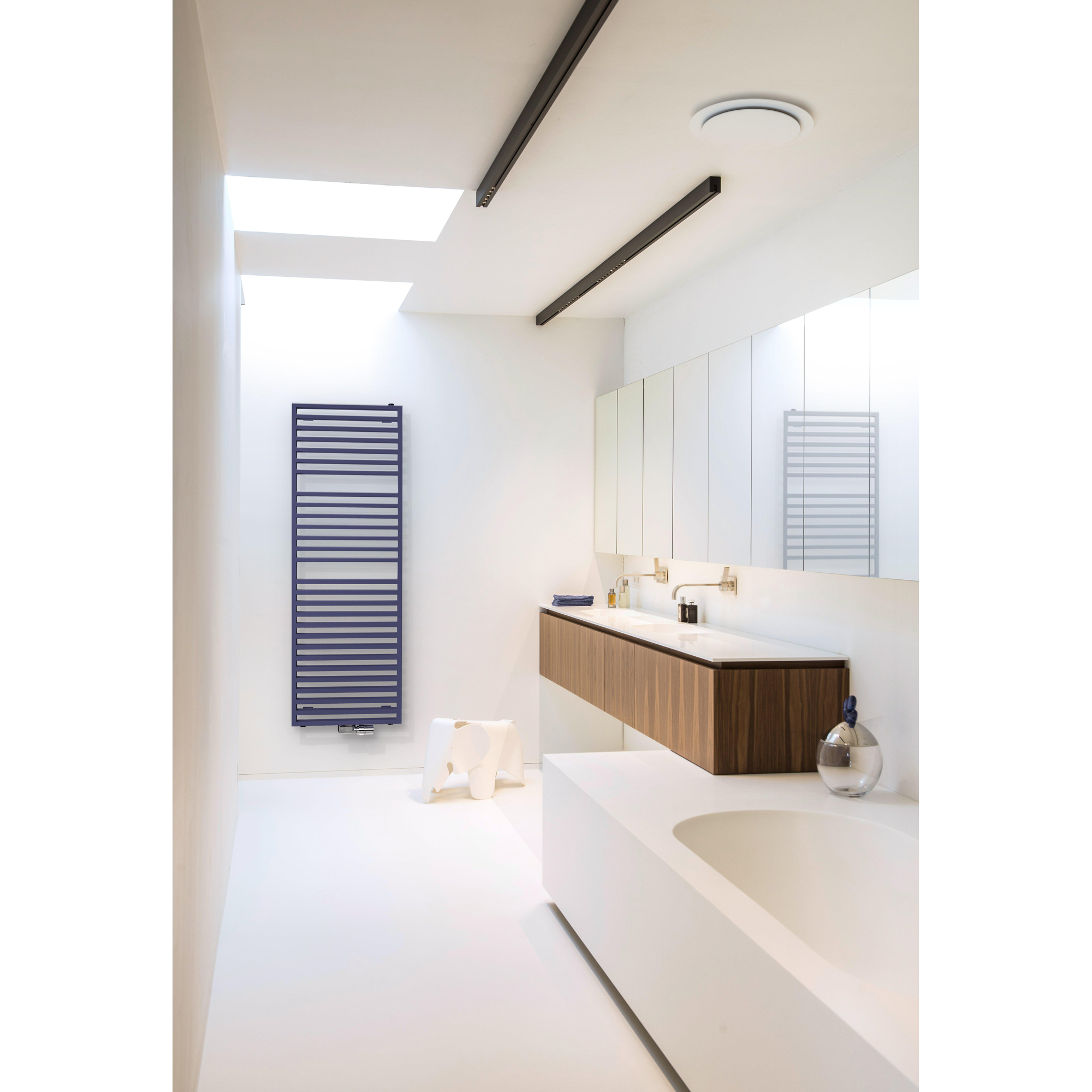 Vous recherchez un radiateur de salle de bains élégant qui chauffe non seulement de manière confortable, mais qui apporte aussi une véritable valeur ajoutée à votre intérieur ? Alors ce modèle design élancé est un choix particulièrement approprié. Grâce à ses dimensions généreuses, il est idéal pour les salles de bains de taille moyenne à spacieuse, par exemple à côté de la baignoire ou près de la douche à l’italienne. La forme architecturale épurée s’harmonise parfaitement avec les salles de bains modernes et minimalistes, mais se combine tout aussi bien avec un intérieur intemporel ou de style hôtel chic. Grâce au positionnement astucieux des ouvertures, vous pouvez facilement sécher et préchauffer vos serviettes, tandis que la puissance élevée de diffusion de chaleur permet de porter rapidement toute la pièce à température. Si vous recherchez donc un radiateur sèche-serviettes design qui sait combiner à la perfection style, confort et fonctionnalité pratique, ce modèle s’intégrera parfaitement dans la salle de bains de vos rêves.