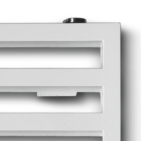 - Fixation minimaliste de la même couleur que le radiateur pour un ensemble sobre et uniforme.