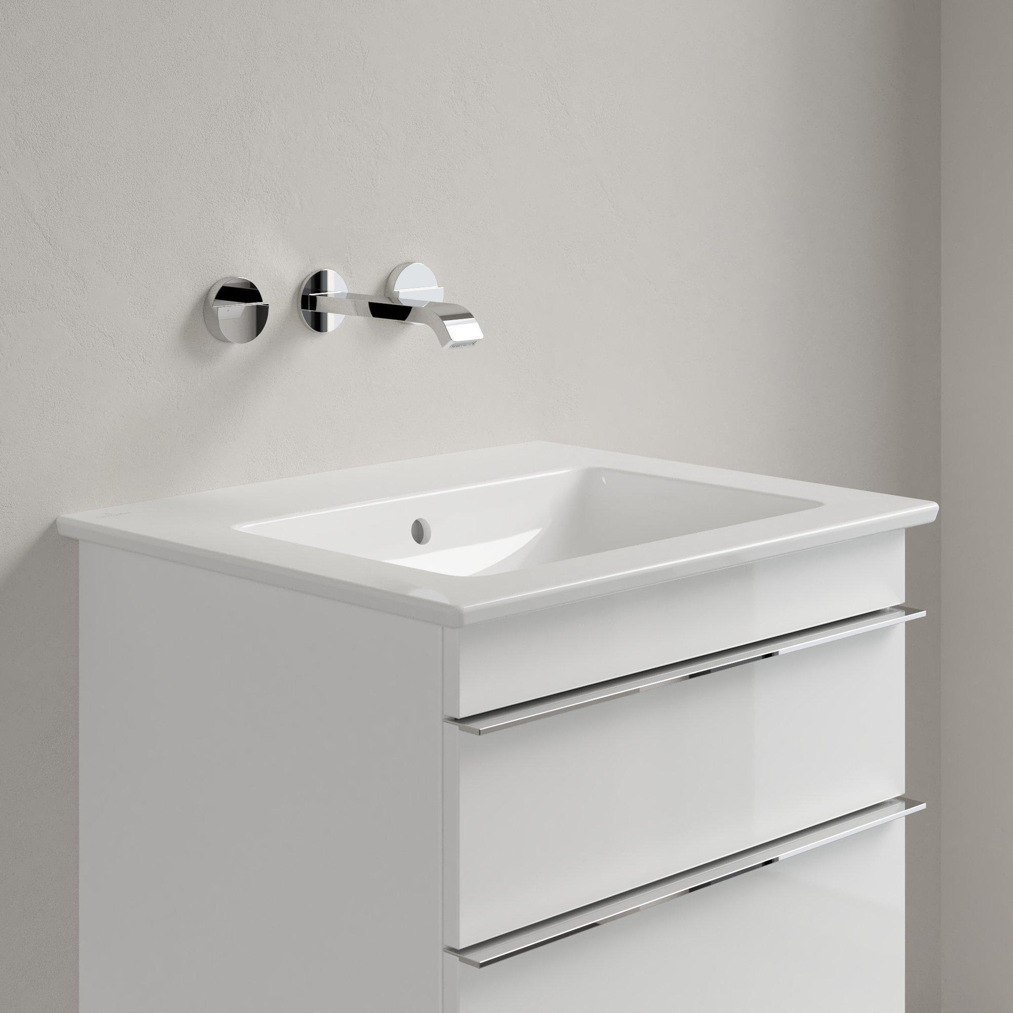 La forme rectangulaire avec les rebords fins caractéristiques donne immédiatement à votre meuble de salle de bains ou à votre installation murale une apparence haut de gamme et axée sur le design. Les dimensions de 60x50 cm offrent un espace de lavage généreux, tout en restant parfaitement en ligne avec les meubles modernes et les lignes droites de votre salle de bains. Comme ce lavabo est réalisé sans trou de robinetterie, vous pouvez choisir vous-même une robinetterie murale épurée ou une robinetterie sur gorge sur le meuble, ce qui offre une liberté supplémentaire dans votre conception. Le trop-plein subtilement intégré maintient l’aspect visuel sobre et évite les inondations, sans interrompre le design.