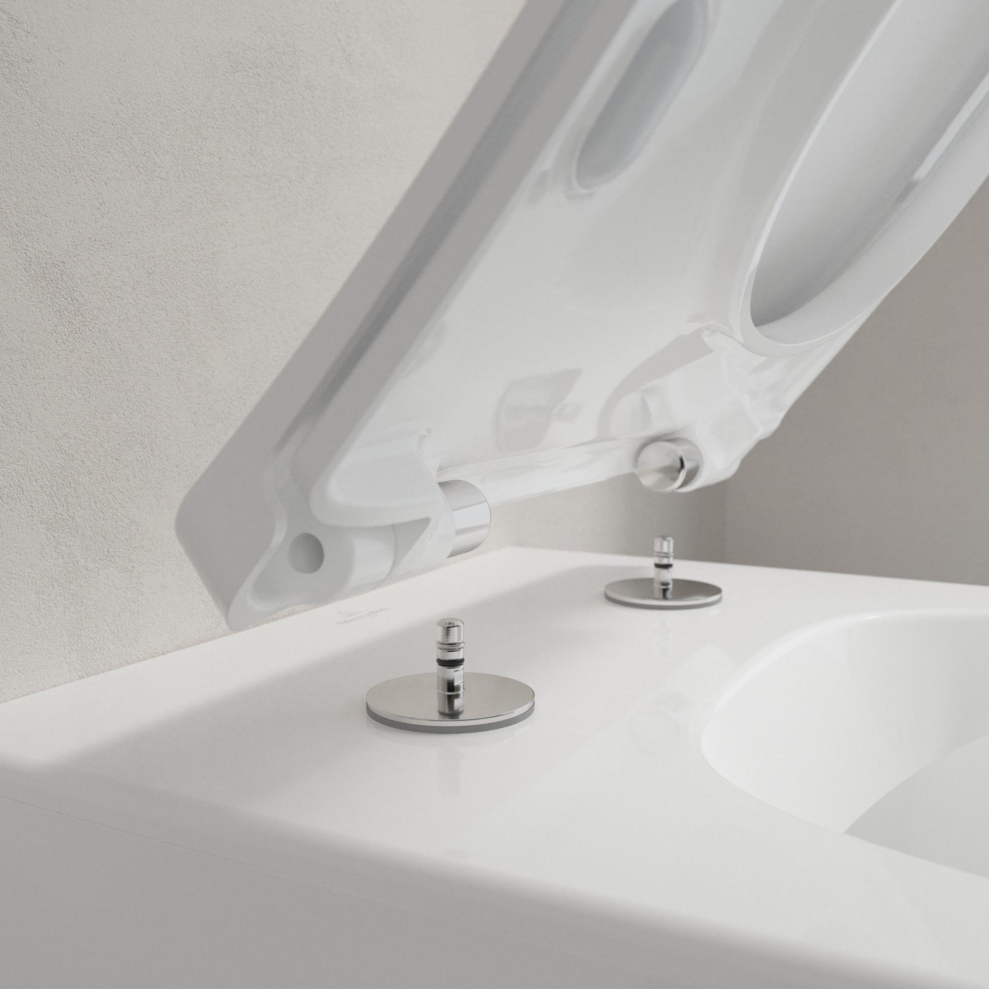 Un avantage important de ce WC est sa conception sans bride avec la technologie DirectFlush. Comme il n'y a pas de bride de rinçage traditionnelle, il n'y a pas d'endroits cachés où la saleté et le calcaire peuvent s'accumuler. L'eau de rinçage est dirigée de manière ciblée et puissante dans la cuve, de sorte que l'intérieur est nettoyé en profondeur et sans éclaboussures. Cela rend le nettoyage beaucoup plus simple : un chiffon et un détergent doux suffisent souvent à garder l'ensemble frais. En combinaison avec la céramique sanitaire lisse, vous profitez d'un WC hygiénique qui reste propre même en cas d'utilisation intensive, idéal pour les familles ou les foyers où plusieurs personnes utilisent les toilettes chaque jour.