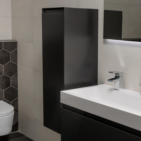 La couleur anthracite mat donne immédiatement à votre salle de bains une apparence haut de gamme et élégante. La surface mate offre un rendu calme et chic, sans reflets ni brillance, ce qui lui permet de se combiner facilement avec pratiquement chaque carrelage ou chaque lavabo. L’anthracite est en outre un choix intemporel : il ne se démode pas rapidement et se marie aisément si vous souhaitez restyler votre salle de bains plus tard. Grâce à la façade sans poignée, le jeu de lignes reste épuré et minimaliste, ce qui rend cette armoire particulièrement adaptée aux salles de bains modernes, industrielles et scandinaves. Vous faites ainsi entrer chez vous un meuble qui n’est pas seulement beau aujourd’hui, mais qui constituera également à long terme une base élégante.