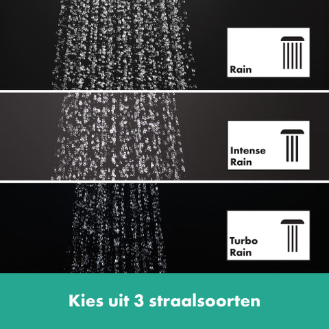 - Trois types de jets : Rain, IntenseRain et TurboRain pour un plaisir de douche polyvalent