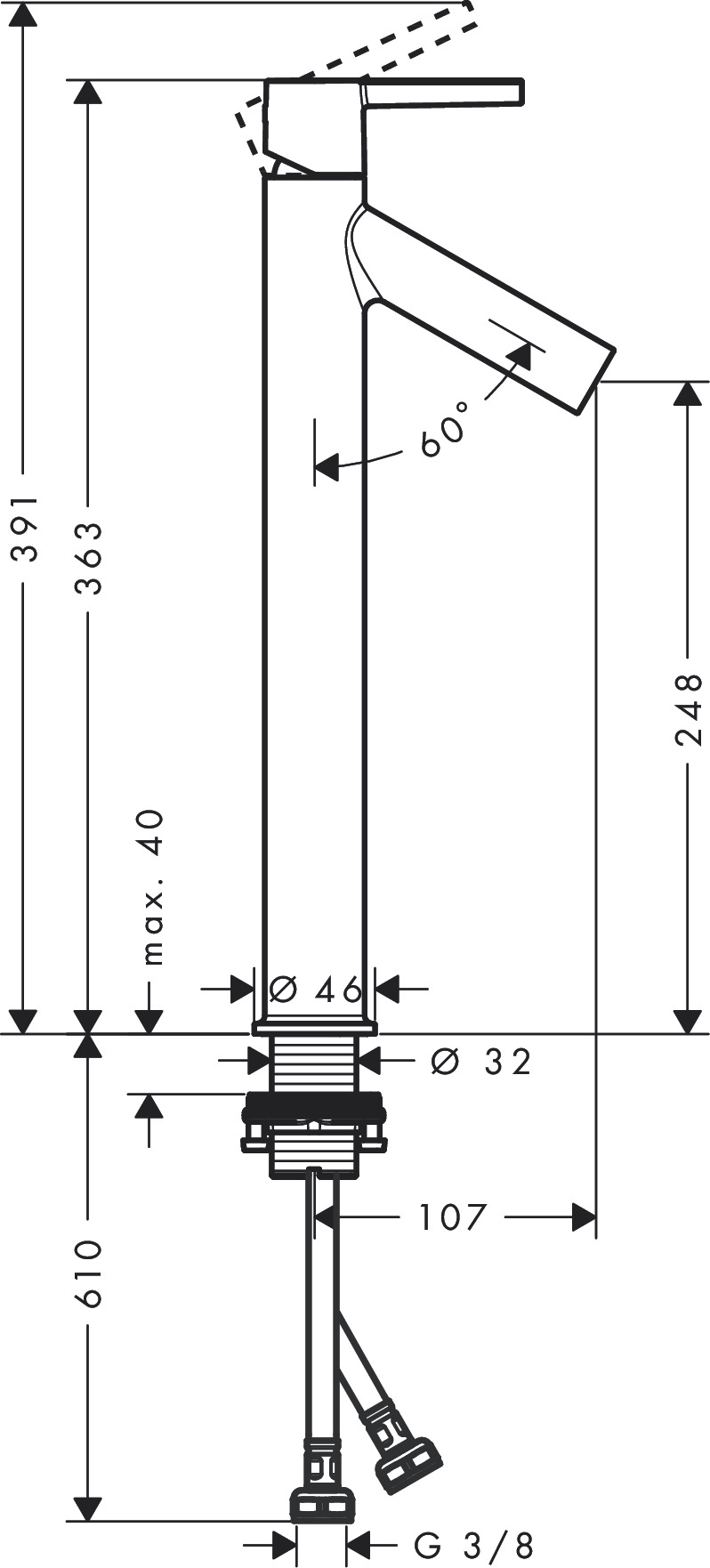 Robinet lavabo Axor Starck Highriser 360 Sans bonde Chrome