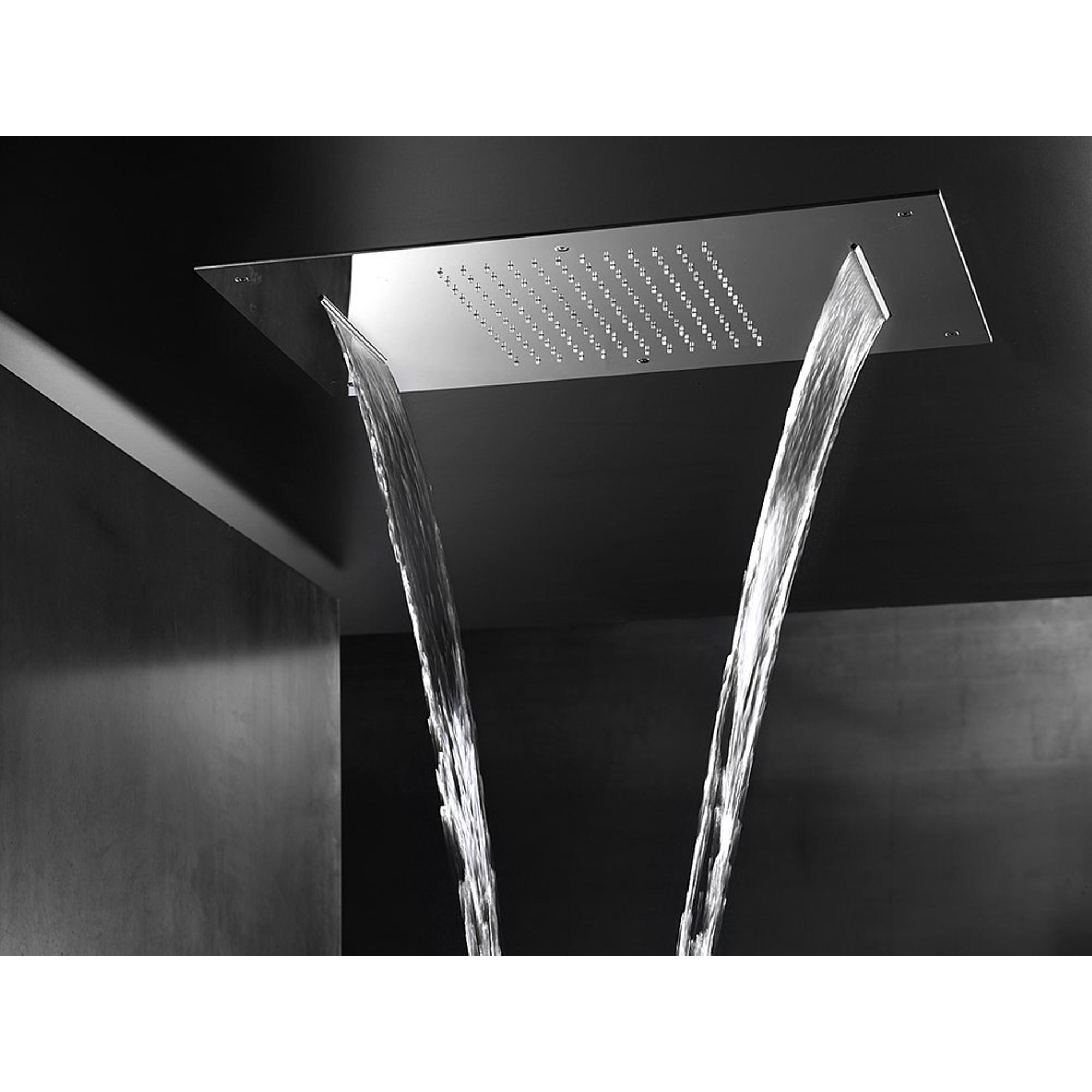 Imaginez : commencer ou terminer chaque journée avec une expérience de douche rafraîchissante et luxueuse qui transforme votre salle de bains en véritable espace bien-être. Ce modèle encastré offre exactement cela – une combinaison parfaite de design épuré et de technologie innovante. Avec ses dimensions généreuses et sa finition chromée subtile, il s’intègre sans effort dans toute salle de bains moderne, tout en apportant une sensation de calme et de confort. La double cascade offre une expérience de chute d’eau unique qui stimule vos sens et vous permet de vous détendre complètement. Grâce au système intelligent, vous profitez d’un jet puissant sans gaspillage, ce qui fait plaisir non seulement à vous, mais aussi à l’environnement. Ainsi, la douche ne devient pas seulement une routine quotidienne, mais un moment de pur plaisir et de détente.