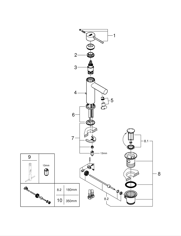 - Système de montage rapide (GROHE QuickFix® Plus)