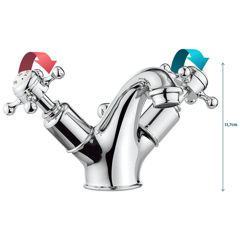 Le design élégant avec double commande à poignées en croix et finition chromée haute brillance confère immédiatement à votre salle de bains une atmosphère classique et authentique. Les formes sont inspirées de l’époque victorienne, mais s’accordent parfaitement avec les salles de bains modernes, par exemple avec un lavabo en marbre ou en céramique blanche. Les poignées à finition blanche créent un contraste chic et rendent la commande claire et agréable. Comme il s’agit d’un modèle compact et bas, il s’intègre parfaitement sur les petits lavabos ou dans un espace toilettes plein de caractère, sans être dominant tout en restant un véritable élément phare.