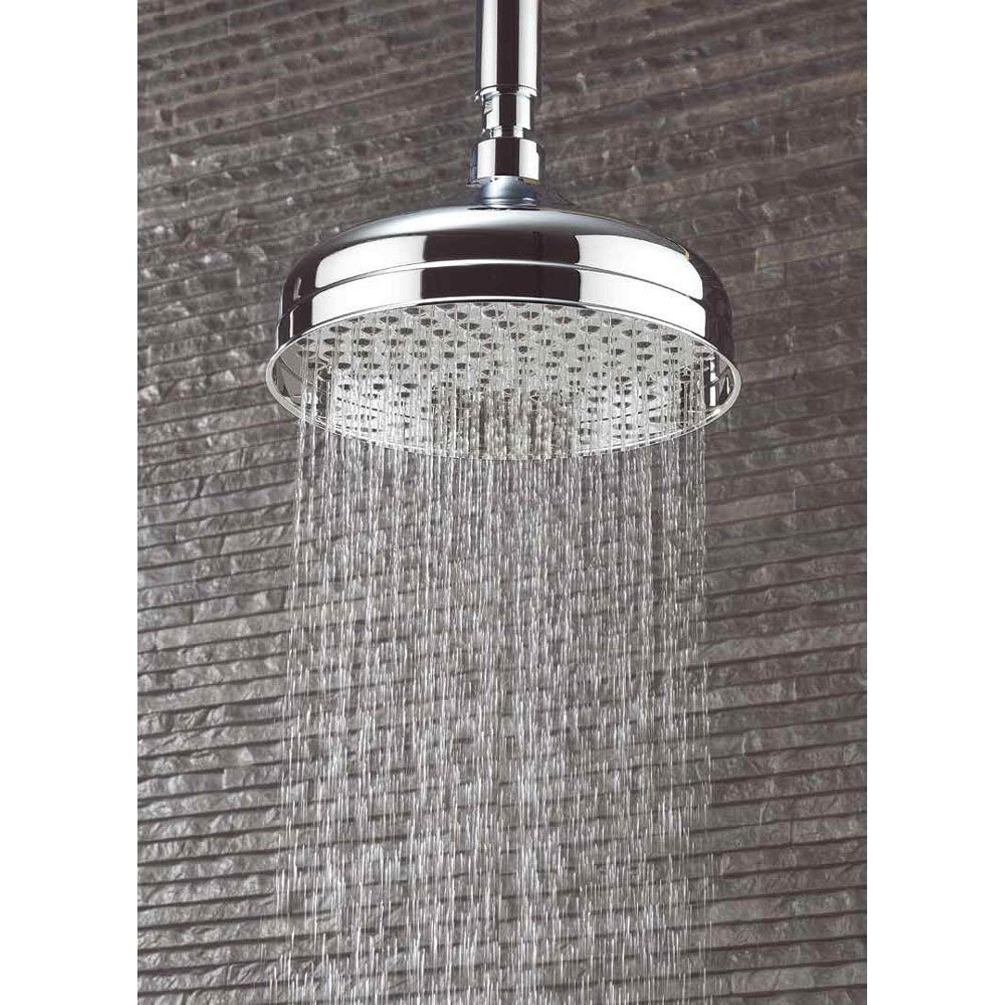 Le design est clairement inspiré du style victorien : rond, raffiné et riche en détails, mais sans excès. Cela rend cette douche de tête idéale si vous disposez d’une ligne de robinets classique ou d’un mitigeur de douche rétro et que vous souhaitez harmoniser parfaitement l’ensemble. La finition chromée brillante offre un aspect luxueux, presque hôtelier, et se combine facilement avec d’autres touches chromées dans votre salle de bains, du crochet porte-serviette au robinet de baignoire. Grâce à son diamètre compact de 20 cm, la tête de douche paraît élégante et peu imposante, même dans les petites salles de bains ou sous des plafonds bas. Vous créez ainsi une expérience de douche pluie raffinée, sans que l’espace ne paraisse chargé ou encombré.