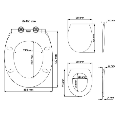 - Mécanisme softclose pour une fermeture silencieuse et sûre de la lunette et du couvercle