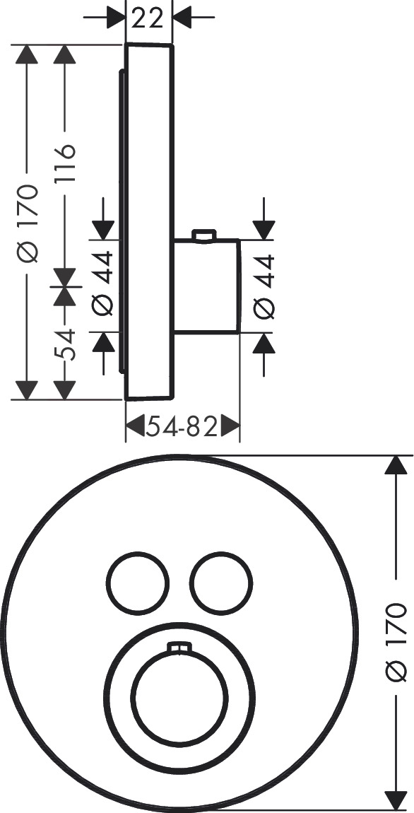 AXOR Showerselect plan de couverture thermostatique avec robinet d'arrêt pour 2 voies chrome