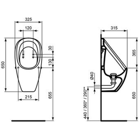 - Conception liée à un modèle, spécialement adaptée à l'urinoir correspondant de la série Connect.
