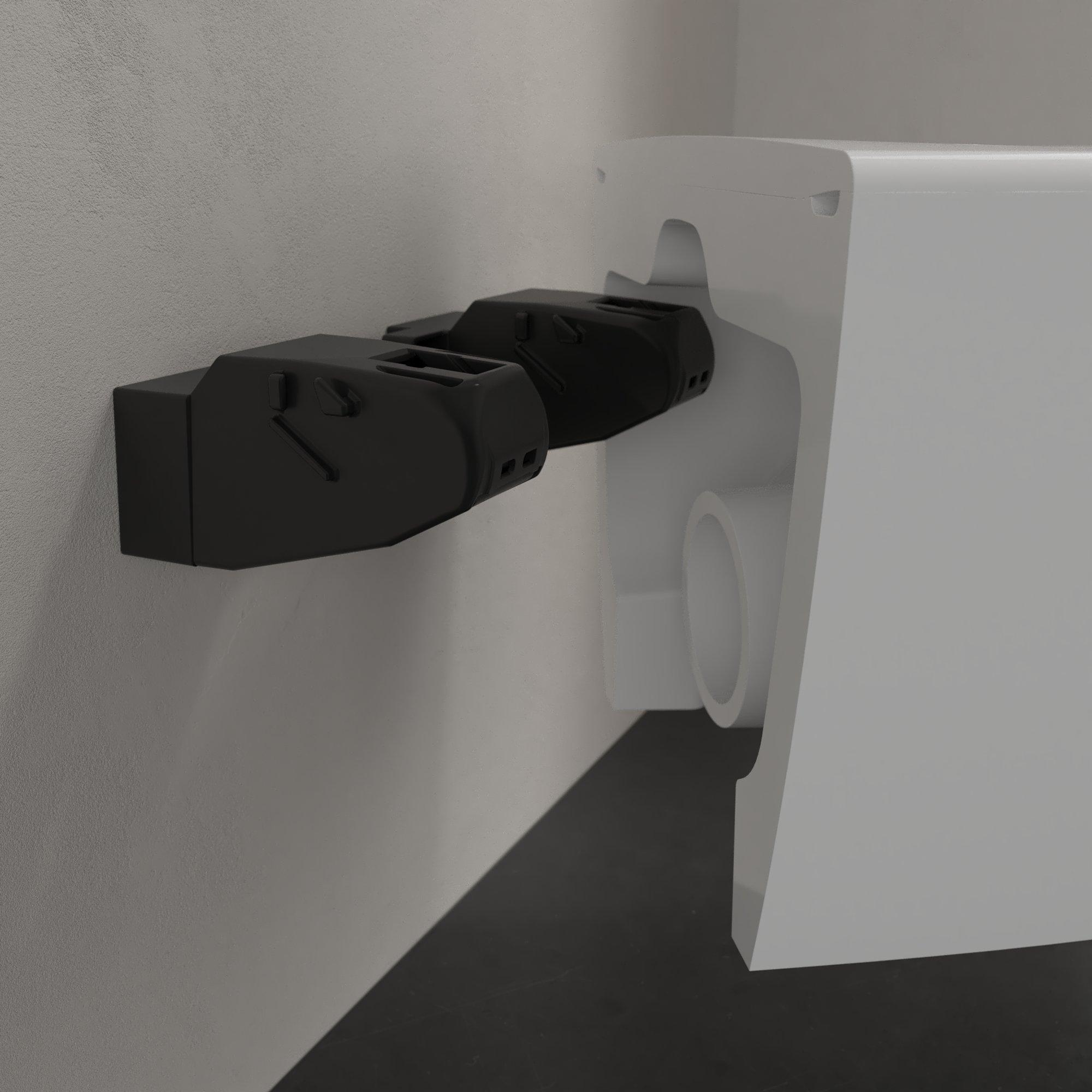 - Montage suspendu offrant une impression d’espace et permettant de garder le sol facilement propre.