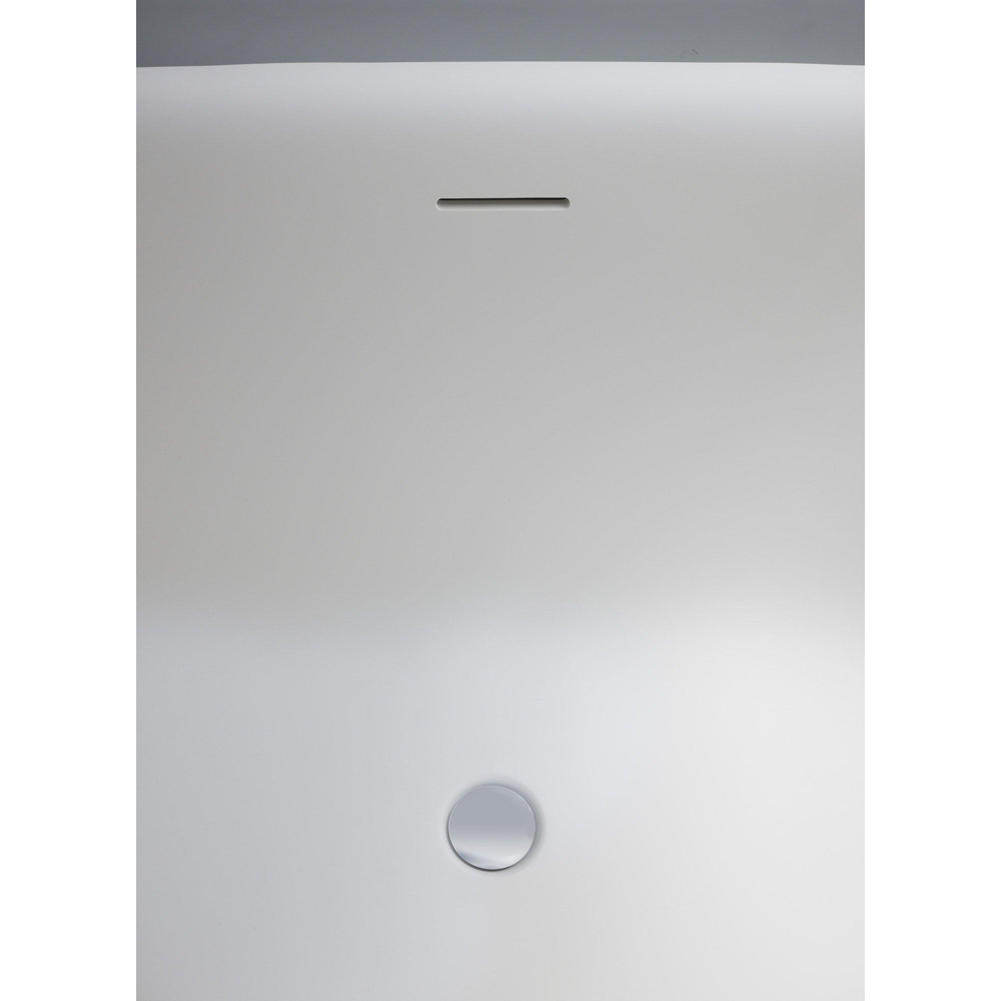 Cette baignoire autoportante est conçue pour une véritable détente. La forme intérieure ovale et l’inclinaison confortable du dossier offrent un soutien naturel à votre corps, de sorte que vous restez allongé confortablement plus longtemps. Avec une hauteur d’environ 62 cm et une cuve profonde, vous disposez d’une hauteur d’eau suffisante pour vous immerger complètement, ce qui est idéal pour de longs moments de bien-être à la maison. La bonde centrale est en outre pratique : vous n’avez pas de bonde gênante sous le dos, ce qui rend aussi le bain à deux plus confortable. Vous optez ainsi pour une baignoire qui n’est pas seulement belle à voir, mais qui incite surtout à profiter plus souvent et plus longtemps.