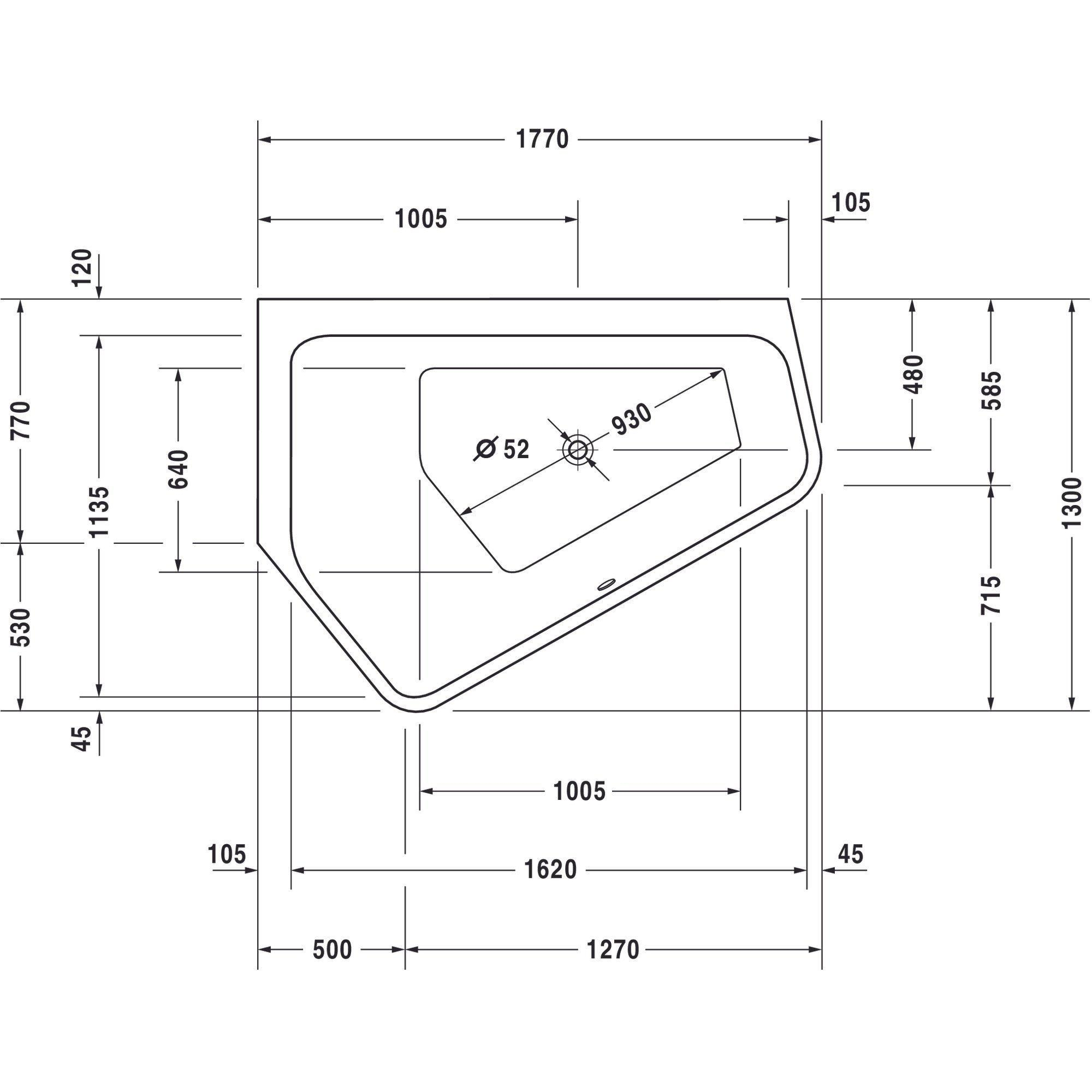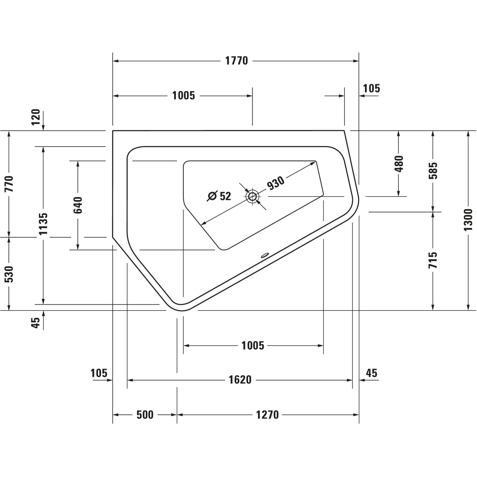 Duravit Paiova baignoire 177x46x130cm trop-plein agencement d'angle gauche acrylique blanc