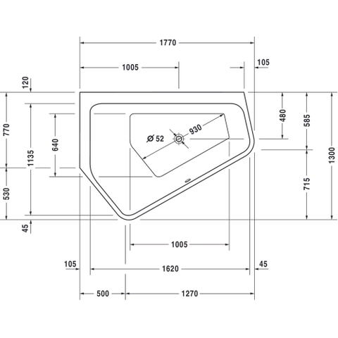 - Dimensions généreuses 177x130 cm avec une profondeur confortable pour des moments de bain relaxants.