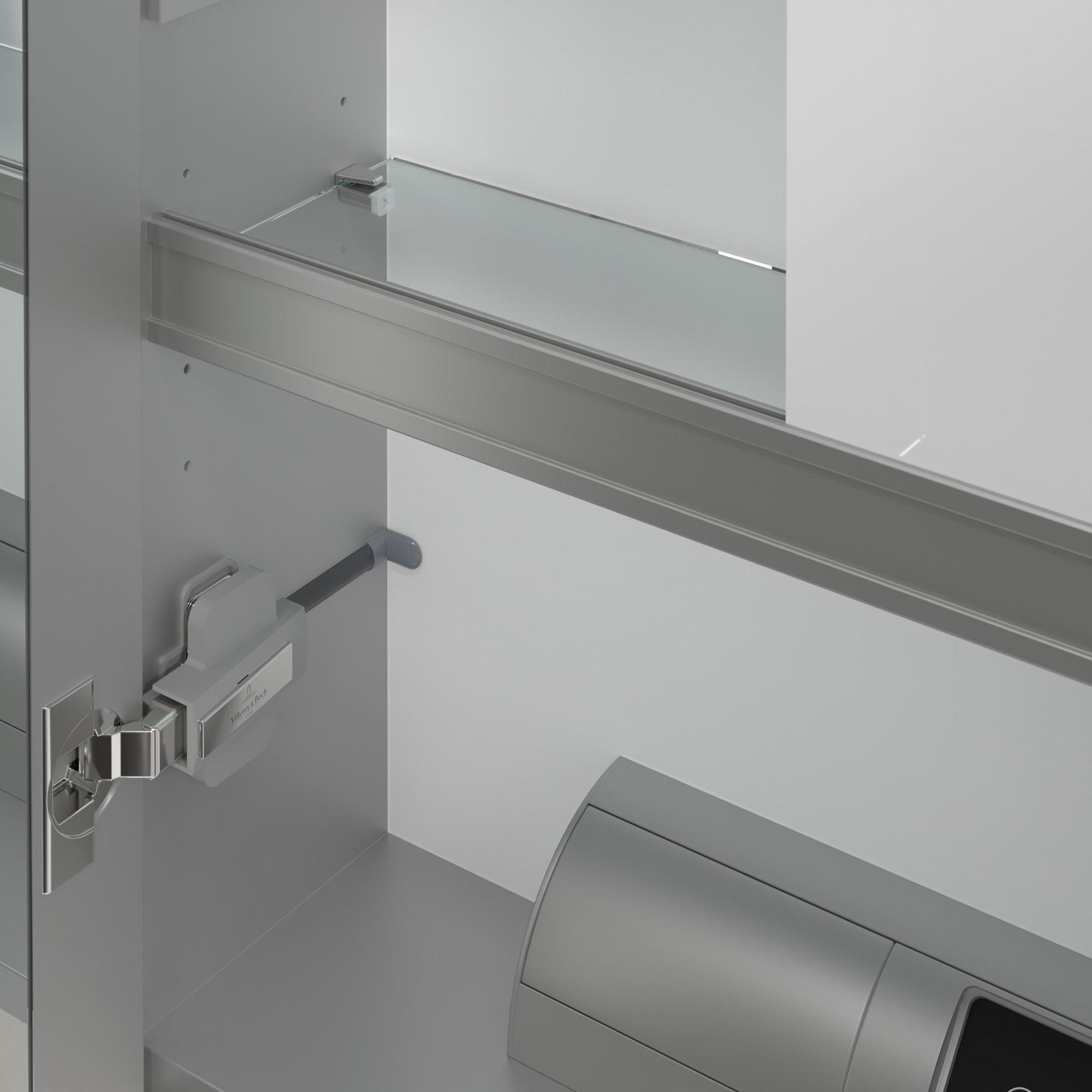 L’éclairage LED intégré le long des portes assure un faisceau lumineux uniforme et réfléchissant, sans ombres gênantes sur votre visage. Grâce à la fonction de gradation à 3 niveaux, vous ajustez facilement la luminosité : lumière blanche lumière du jour pour les tâches précises comme le rasage ou le maquillage, et lumière blanc chaud pour terminer la journée en douceur. Avec l’interrupteur à capteur intuitif, vous passez sans effort d’une couleur et d’une intensité de lumière à l’autre, sans devoir chercher un petit bouton. L’éclairage supplémentaire du lavabo offre en outre une meilleure visibilité sur la zone du lavabo, ce qui n’est pas seulement confortable, mais aussi sûr. Vous créez ainsi avec une seule armoire de toilette l’ambiance lumineuse qui correspond exactement à votre moment : énergique le matin, détendue le soir.
