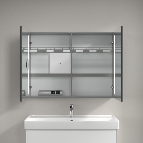 Villeroy & Boch My View 14+ armoire de toilette - avec 2 portes avec éclairage LED vertical 100x75x17.3cm - incl. boîte à médicaments verrouillable