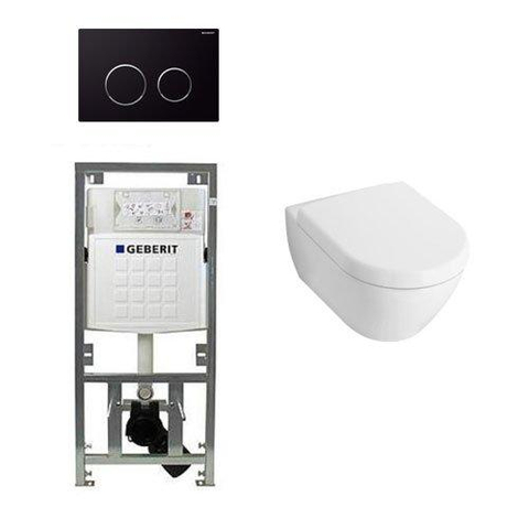 Villeroy & Boch Subway 2.0 Compact avec abattant ensemble de toilette avec réservoir encastré Geberit et plaque de commande Sigma20 noire