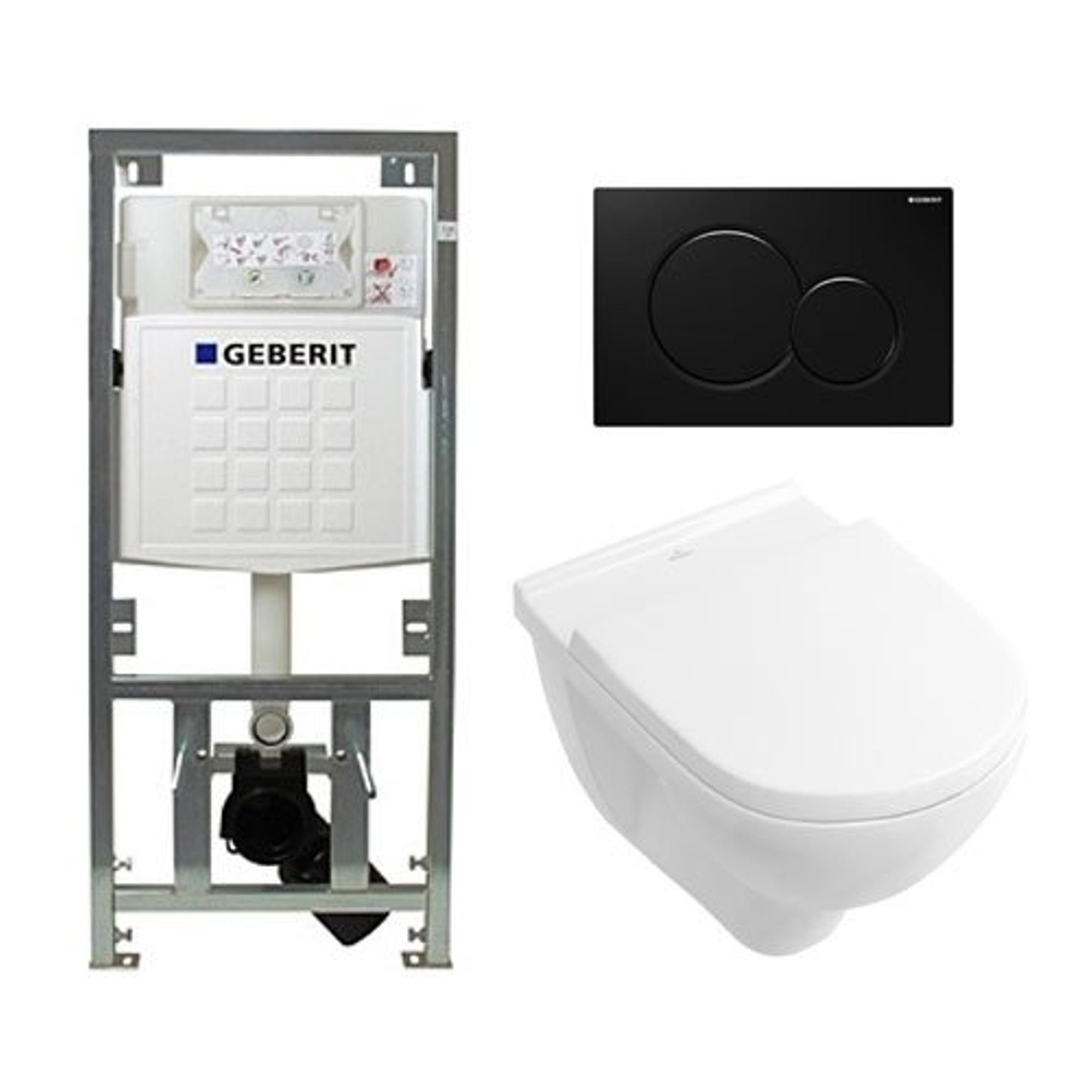 Villeroy & Boch O.novo ensemble encastré avec cuvette suspendue à évacuation profonde blanc abattant softclose plaque de commande noir