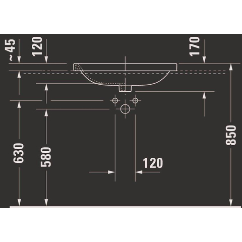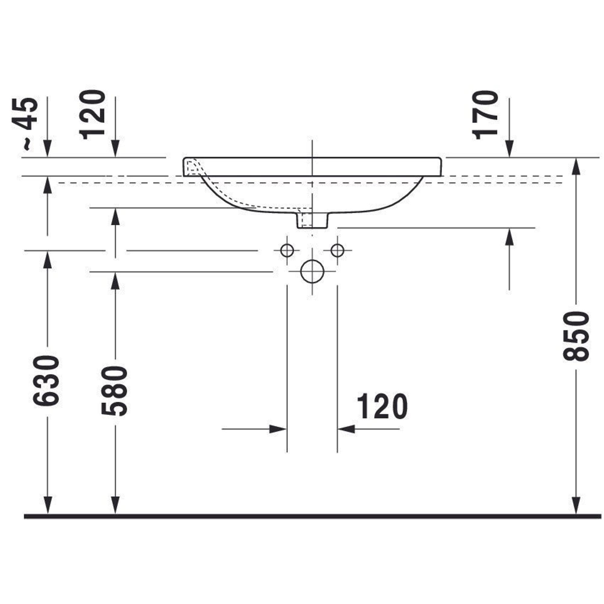 Duravit DuraStyle lavabo encastré avec trop-plein avec trou de robinet 61,5x49,5cm blanc