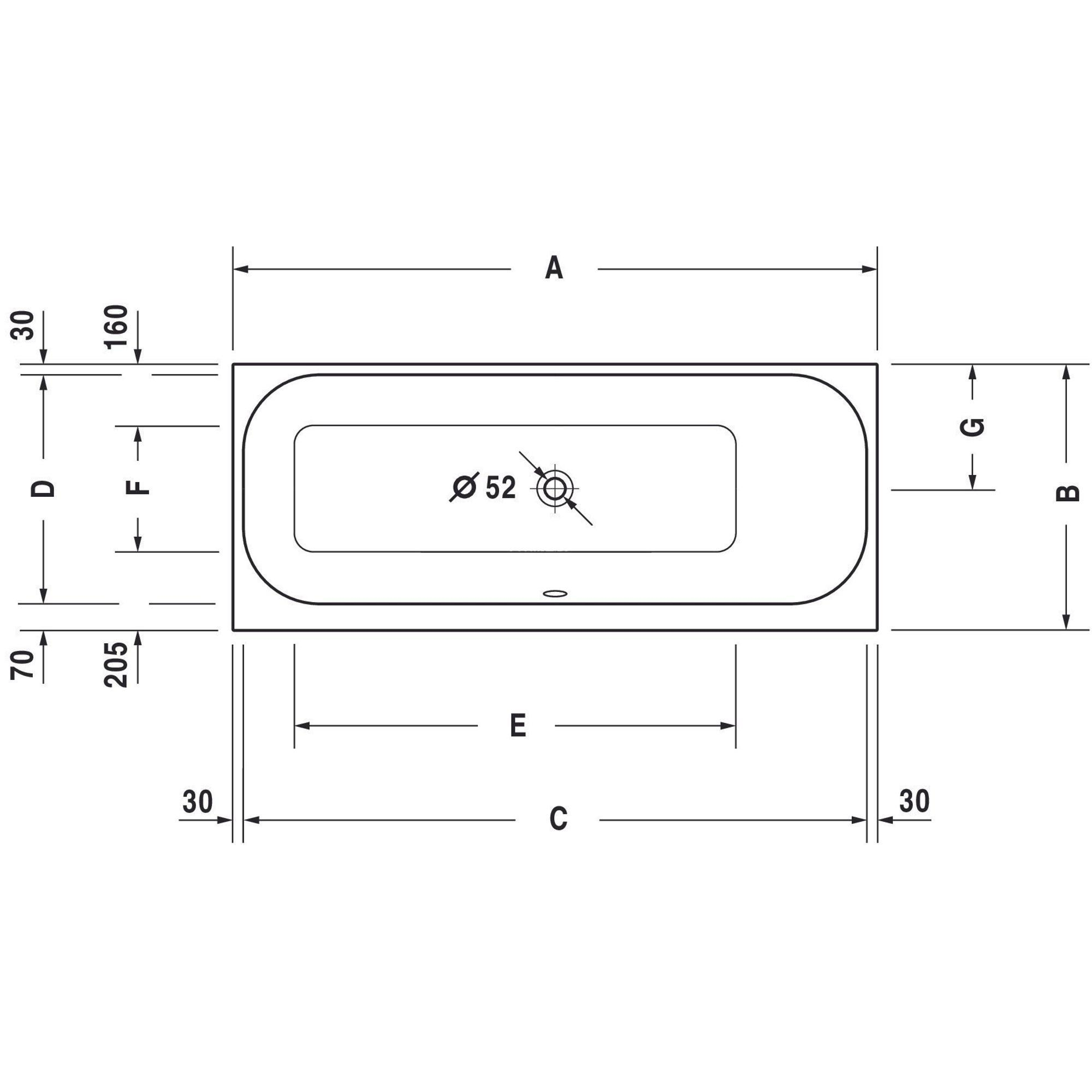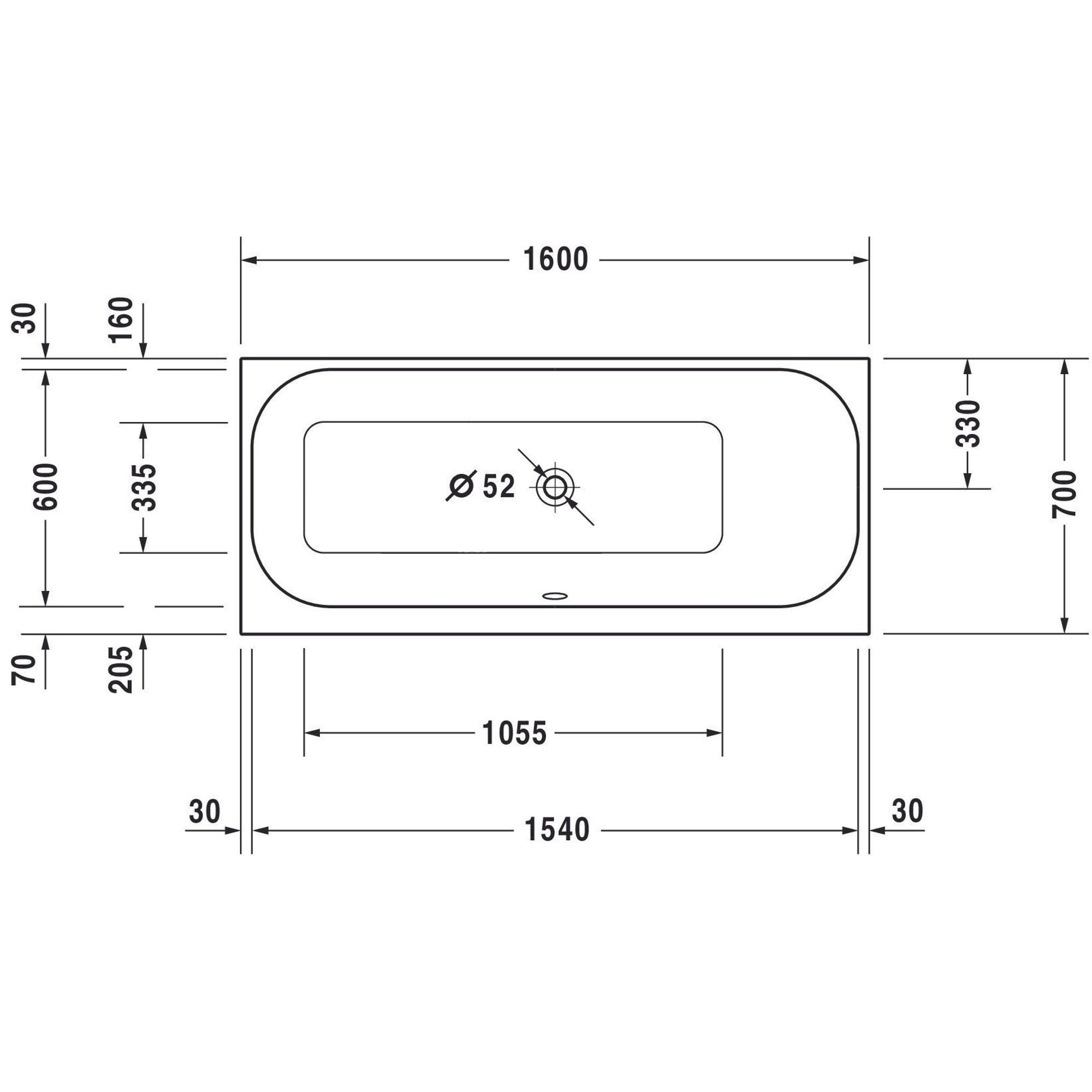 Duravit HappyD 2 baignoire encastrée en matériau de synthèse acrylique rectangulaire avec appui-dos à droite 160x70x46cm sans pieds blanc
