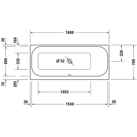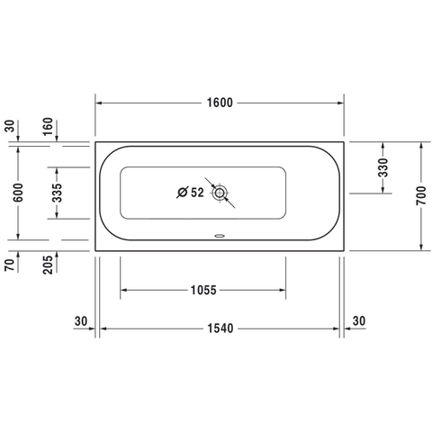 - Baignoire encastrée compacte de 160x70 cm : idéale pour les salles de bains plus petites ou étroites.