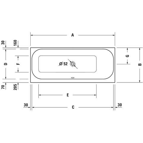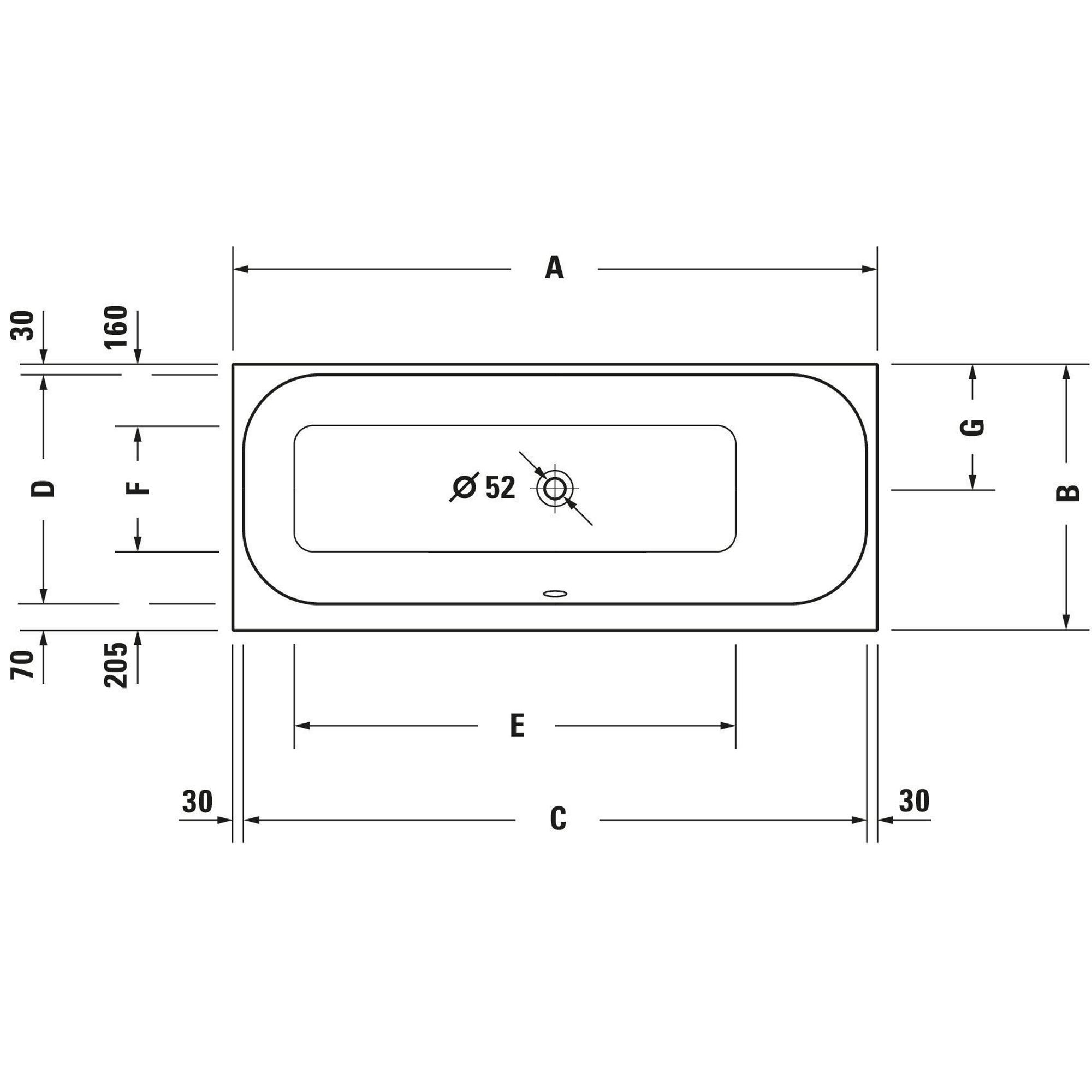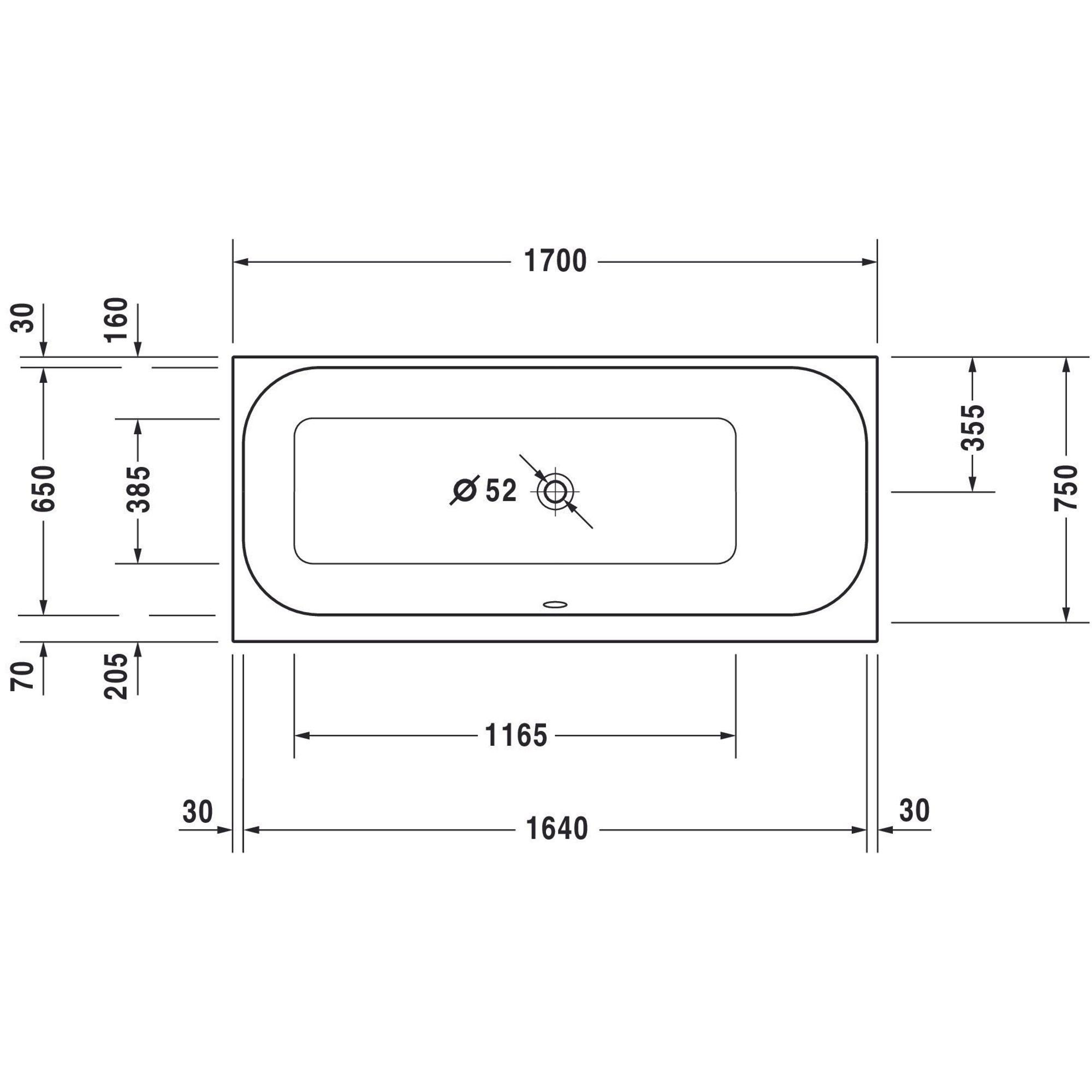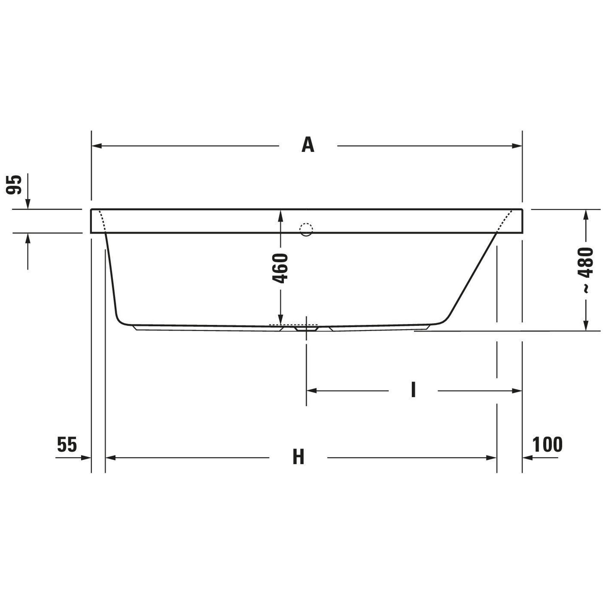 Duravit HappyD 2 baignoire encastrable synthétique acrylique rectangulaire avec soutien dorsal à droite 170x75x46cm sans pieds blanc