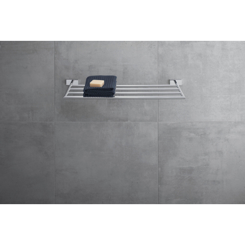 Avec une longueur de 66,8 cm et une profondeur de 24 cm, ce porte-serviettes mural offre étonnamment beaucoup d'espace. Vous pouvez y placer jusqu'à quatre serviettes, ce qui le rend idéal pour une utilisation familiale quotidienne ou pour une salle de bains où vous recevez souvent des invités. Sa largeur permet d'étendre ou de plier soigneusement les serviettes de bain, afin qu'elles sèchent plus rapidement et restent fraîches. Comme le porte-serviettes est compact en hauteur, il s'intègre facilement au-dessus d'un radiateur, au-dessus des toilettes ou à côté de la douche. Vous exploitez ainsi de manière optimale le mur et conservez une précieuse surface au sol libre. Pratique si vous souhaitez aménager votre salle de bains intelligemment, sans avoir à renoncer au confort.