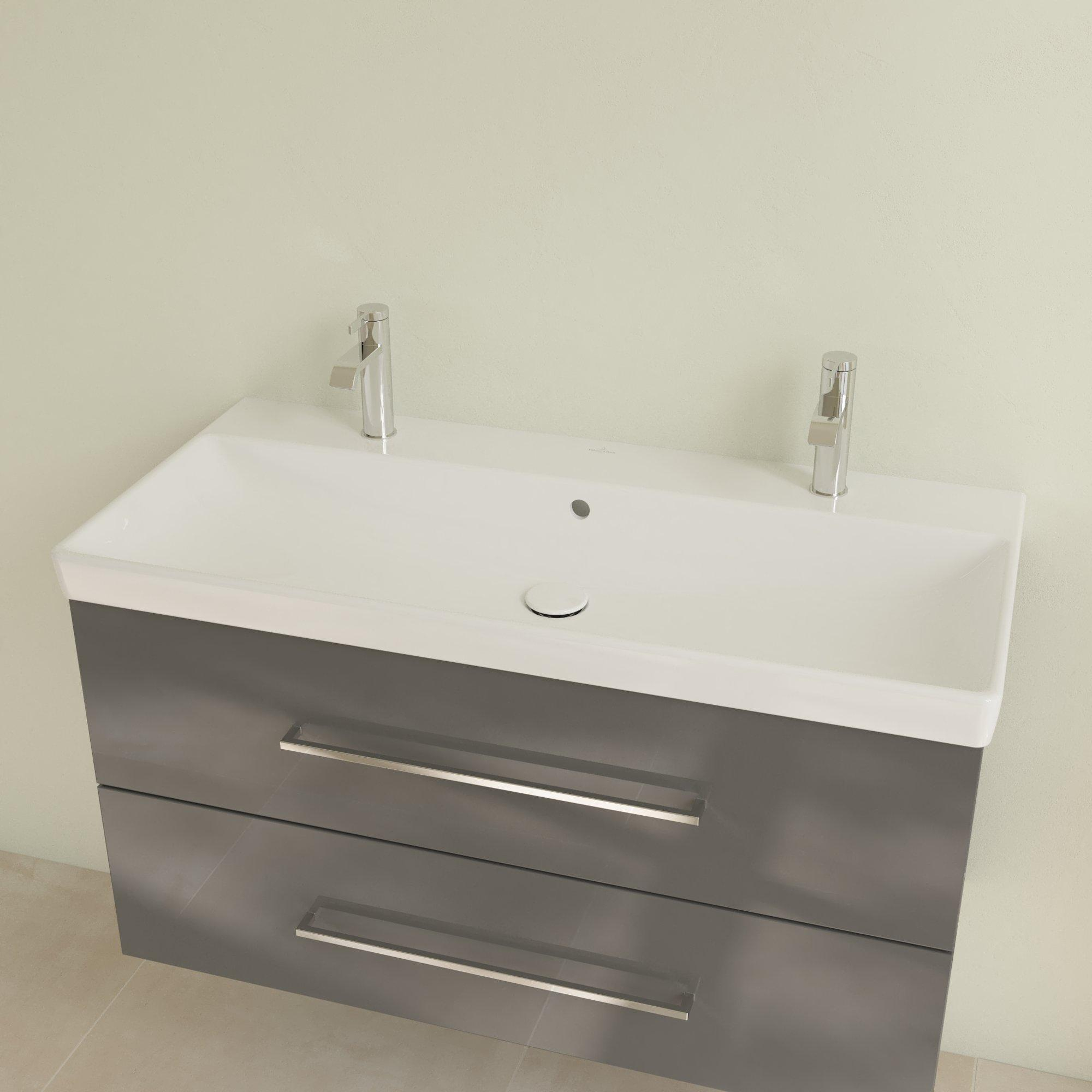 Villeroy & Boch Avento lavabo meuble - 100x47cm - 2 trous de robinet avec trop-plein blanc