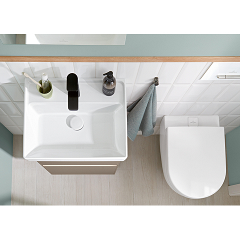 Avec ce WC suspendu, tout tourne autour de l’hygiène et de la fraîcheur. Le design sans bride DirectFlush évite les zones cachées où la saleté et les bactéries peuvent s’accumuler, ce qui vous offre un nettoyage en profondeur à chaque chasse d’eau. La surface CeramicPlus est spécialement conçue pour réduire l’adhérence de la saleté et du calcaire, de sorte que les gouttes s’écoulent plus facilement et que vous ayez moins souvent besoin de produits de nettoyage agressifs. Particulièrement remarquable est le réservoir ViFresh intégré au niveau de l’arrivée d’eau : vous y placez aisément des blocs WC ou du gel, qui sont répartis uniformément à chaque chasse. La cuvette reste ainsi propre plus longtemps et les toilettes dégagent en permanence une odeur de frais, sans godets supplémentaires visibles ni dépôts au bord.