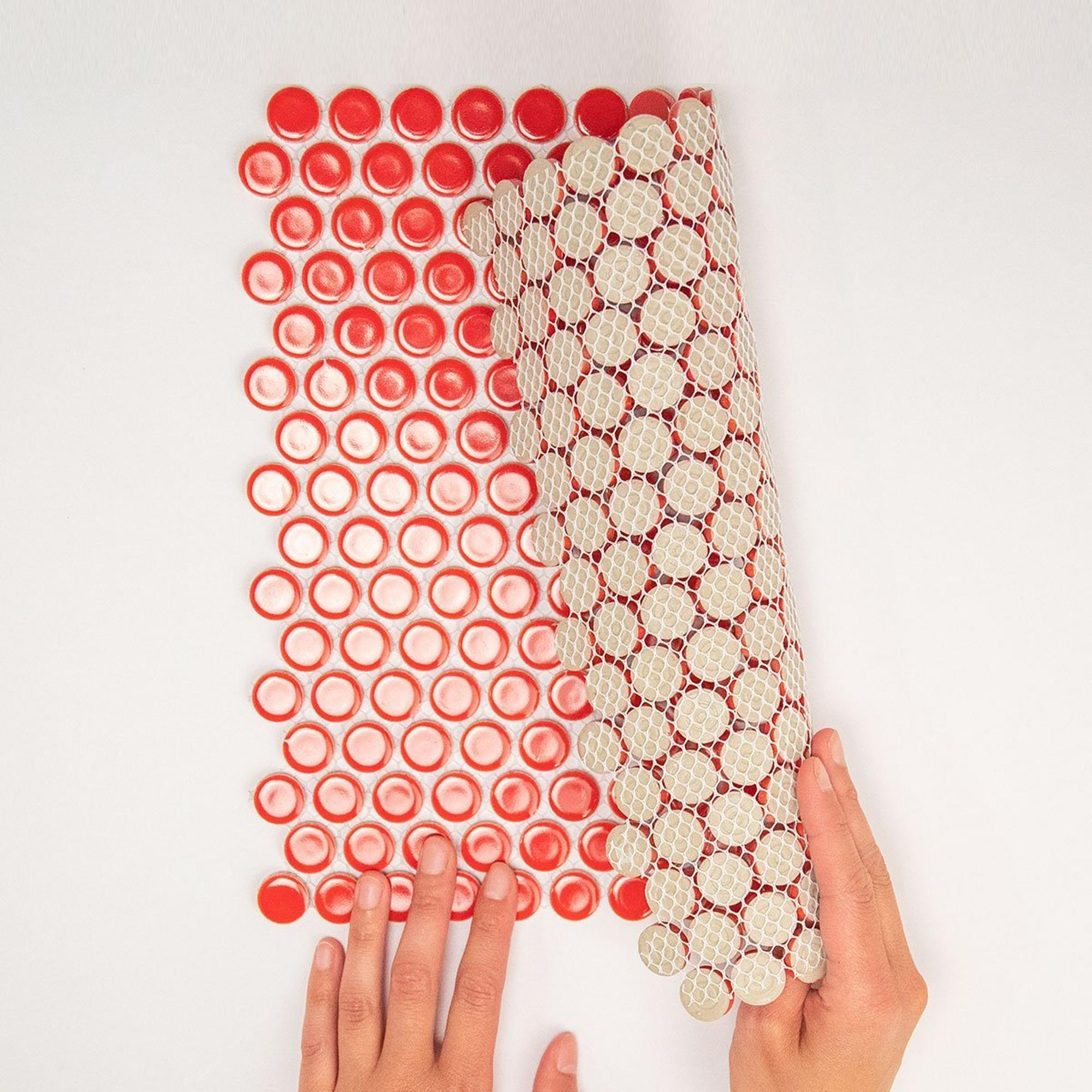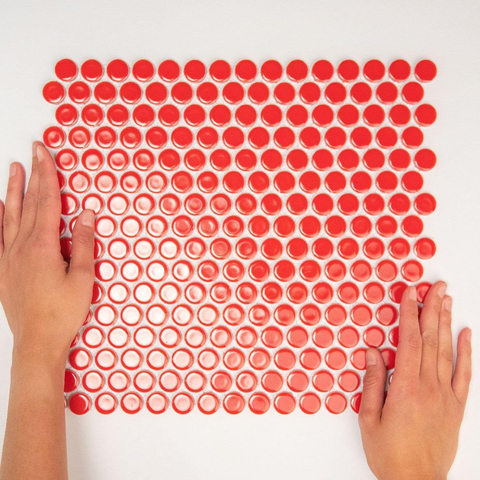 La Mosaic Factory Venice carreau de mosaïque - 31.5x29.4cm - carreau mural - Rond - Porcelaine Rouge Brillantest un ajout magnifique à toute salle de bain ou cuisine. Avec son éclat rouge vif et sa forme ronde unique, ce carreau de mosaïque ajoute une touche d'élégance et de style à chaque espace. La finition de haute qualité et la porcelaine durable garantissent que ce carreau est non seulement beau, mais aussi durable. Que vous souhaitiez créer un mur d'accent ou ajouter un élément artistique à votre intérieur, ce carreau de mosaïque est le choix parfait.