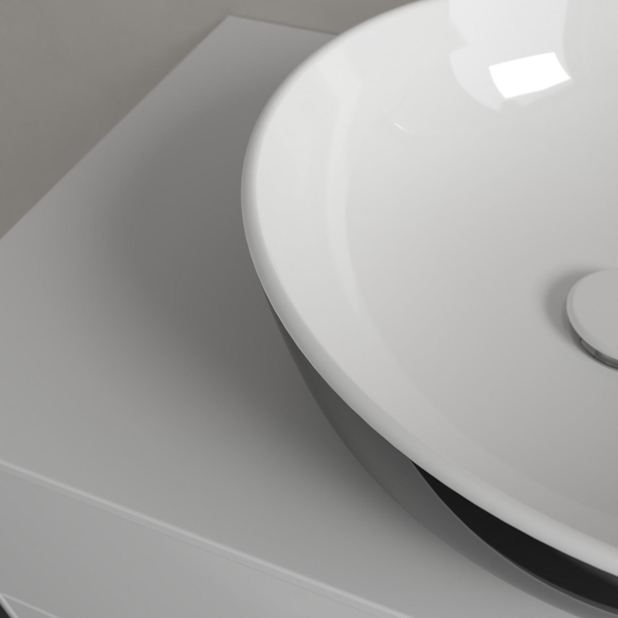 Avec cette élégante vasque à poser, vous apportez un véritable statement design dans votre intérieur. La combinaison de la forme ronde et élancée et du look BiColour moderne rend ce modèle idéal pour les salles de bains, les toilettes et les suites de luxe élégantes. Grâce à son format compact, elle s’intègre parfaitement sur un plan de toilette ou un meuble, aussi bien dans les petites que dans les grandes salles de bains. Grâce à la profondeur confortable, l’eau éclabousse moins rapidement par-dessus le bord, ce qui est agréable pour un usage quotidien et réduit le temps de nettoyage de la zone de lavage environnante. Si vous recherchez une vasque ronde de haute qualité, à la fois pratique et résolument stylée, c’est un choix malin pour donner à votre salle de bains une allure d’hôtel haut de gamme.