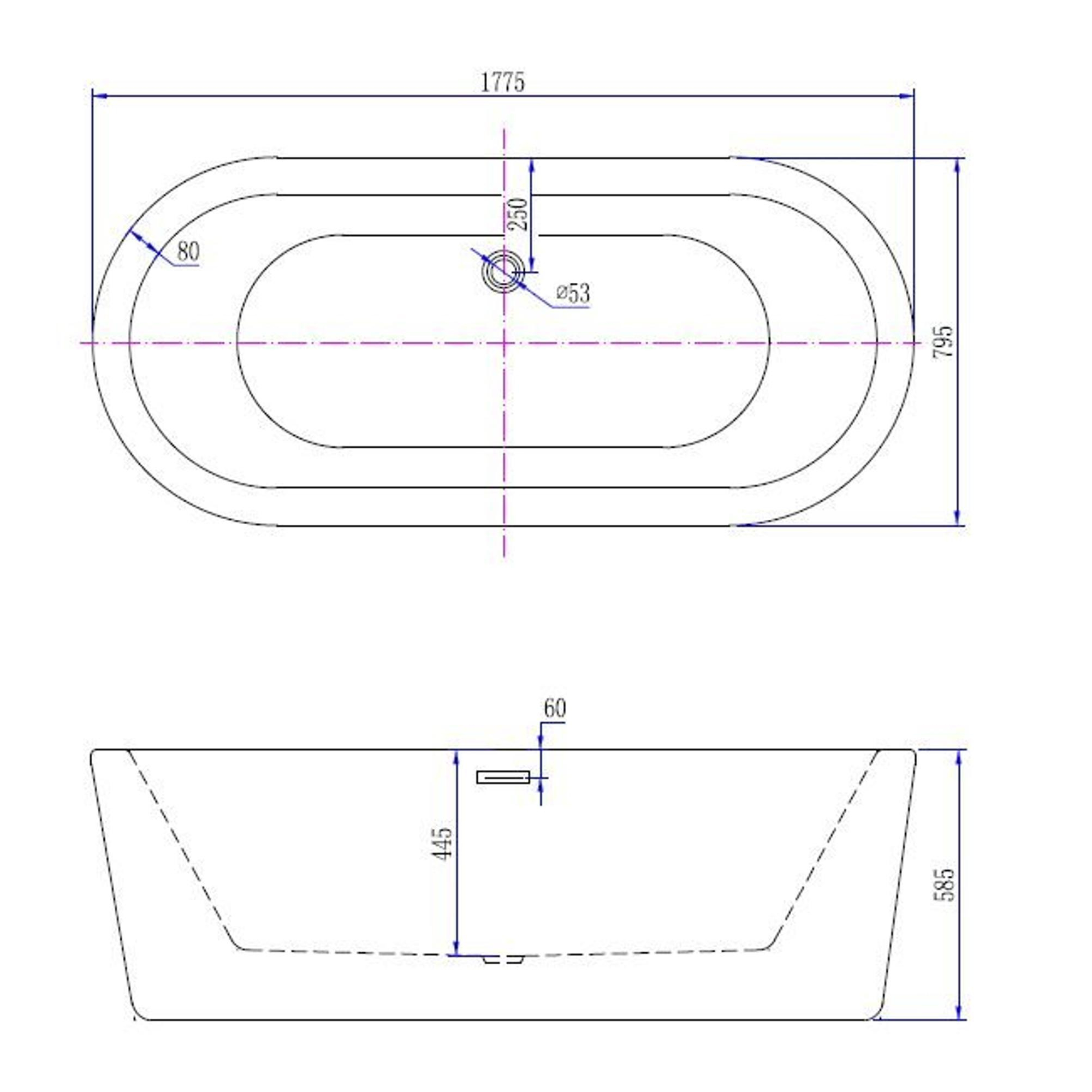 Xellanz Bianco Baignoire îlot 178 x 80 cm acrylique blanc brillant avec bonde blanc brillant
