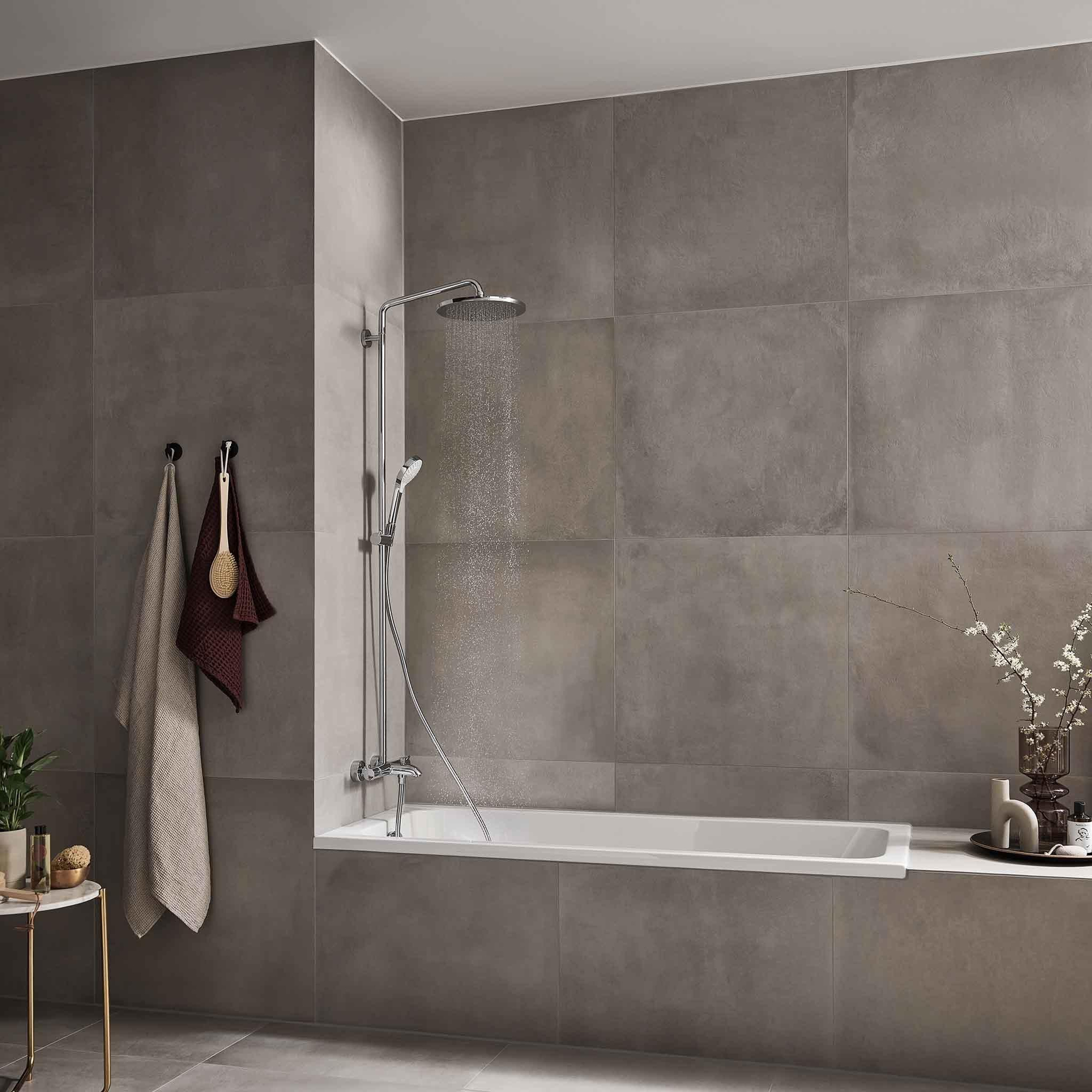 La combinaison d'une grande douchette principale et d'une douchette à main avec trois types de jets différents rend ce système particulièrement polyvalent. D'une simple pression sur un bouton, vous passez facilement entre des jets de pluie doux, des jets de massage puissants et un jet d'eau plus intense qui soulage la tension musculaire. Le mitigeur thermostatique intégré pour bain permet de remplir rapidement et efficacement la baignoire, tandis que le support de douchette à main réglable en hauteur et les éléments pivotants vous permettent d'ajuster la douche entièrement à votre convenance. Vous bénéficiez ainsi d'un confort et d'une facilité d'utilisation optimaux, jour après jour.