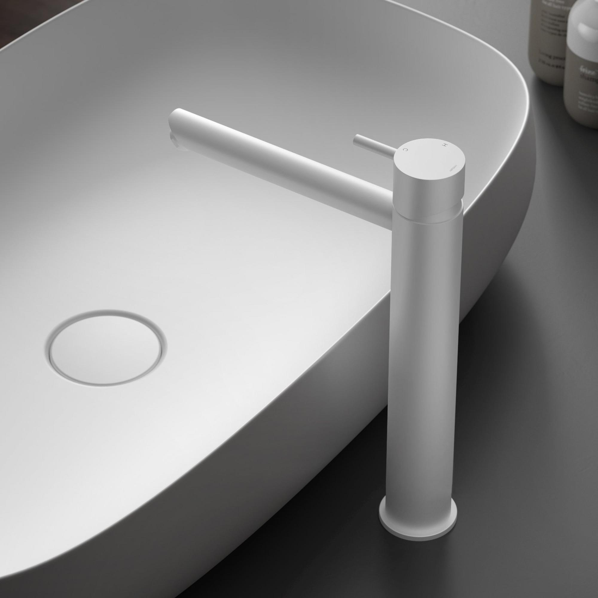 Ce robinet se distingue immédiatement par son design moderne et minimaliste. Le bec droit et la surface blanche mate offrent une apparence fraîche et intemporelle qui s’accorde parfaitement avec divers styles d’intérieur. Que vous ayez une salle de bains épurée et industrielle ou que vous optiez plutôt pour une atmosphère douce et naturelle, ce robinet ajoute toujours une touche raffinée. Grâce à la position surélevée, vous créez en outre un effet ludique qui agrandit optiquement l’espace. Vous profitez ainsi non seulement d’un produit fonctionnel, mais aussi d’un élément élégant qui donne à votre salle de bains un caractère unique.