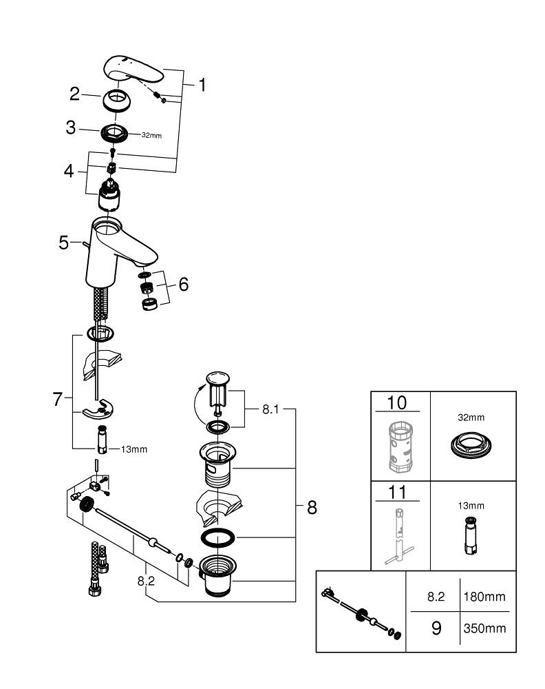 GROHE SilkMove ES, Cartouche en céramique 35 mm avec économie d’énergie ouverture eau froide au centre