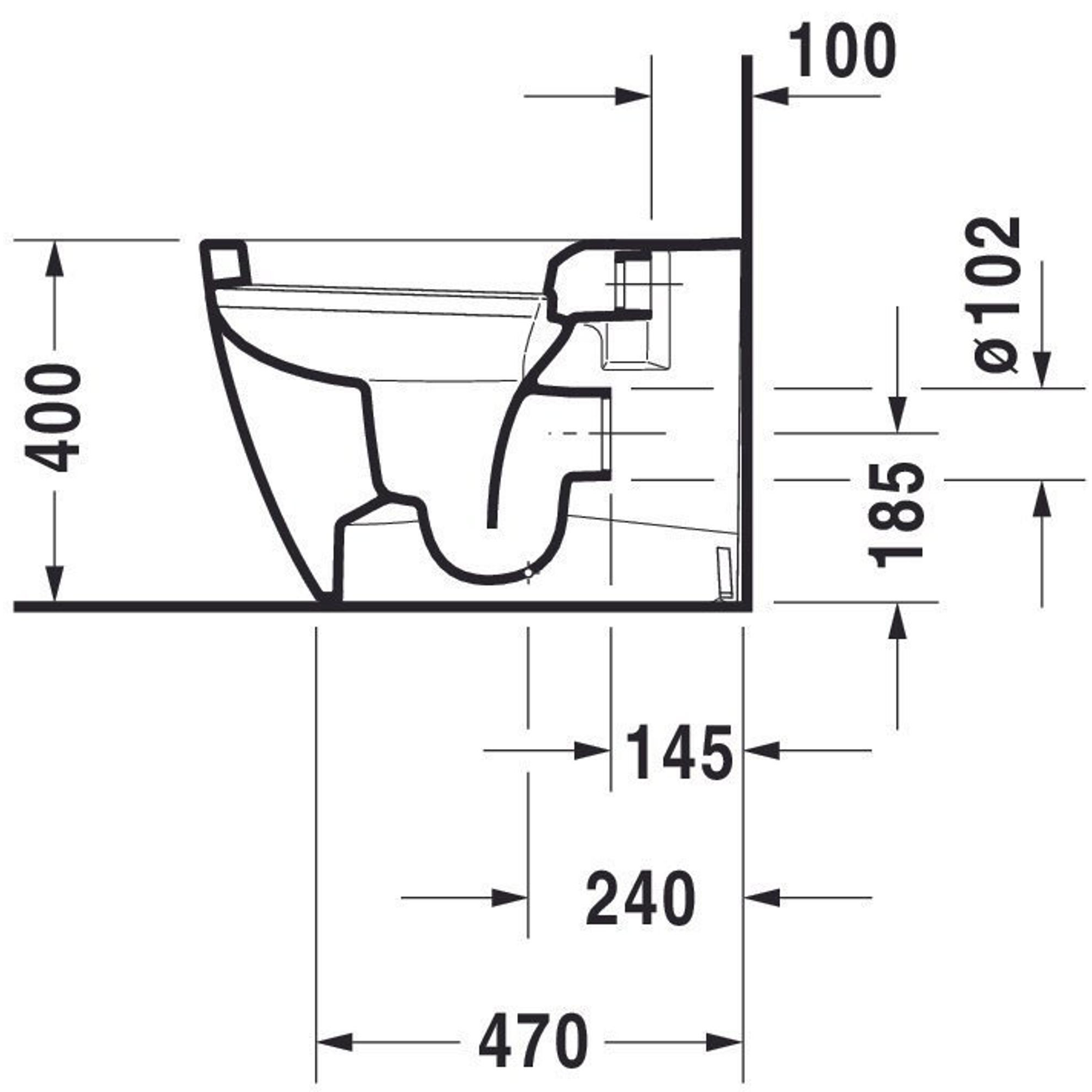 Duravit ME by Starck cuvette à poser à chasse profonde back to wall avec Hygieneglaze 37x60cm évacuation horizontale blanc