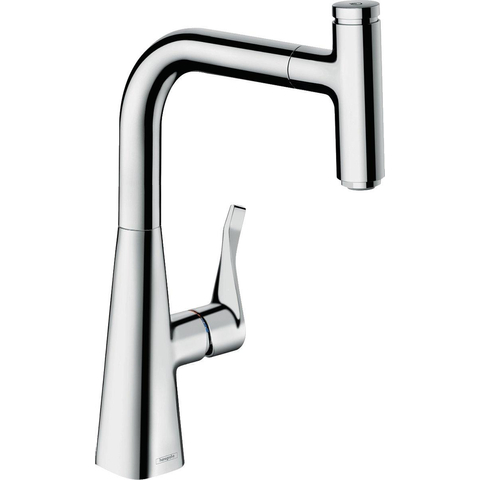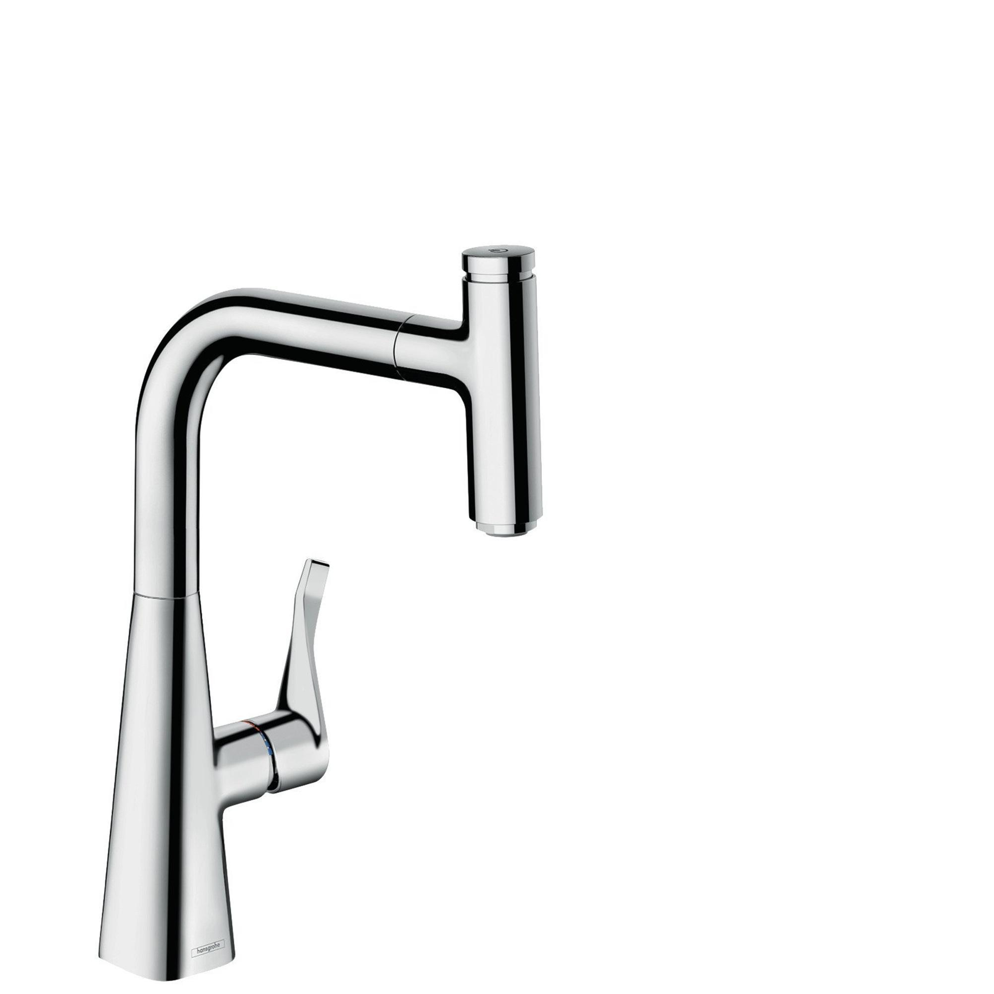 Hansgrohe Metris Select robinet de cuisine 240 avec bec extractible pivotant à 150° avec bouton Select pour fonction pause chrome