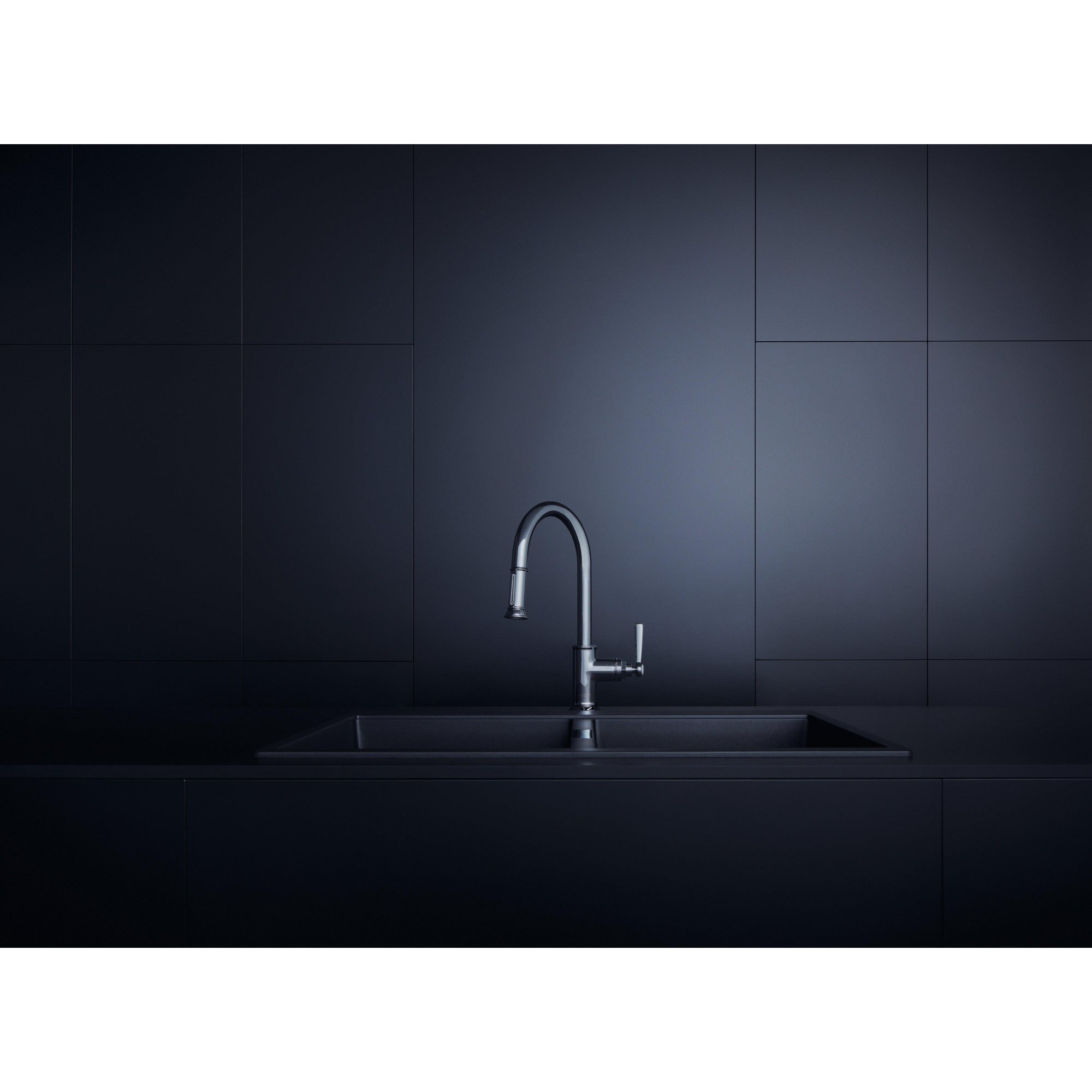 Ce robinet de cuisine élégant est un choix stylé si vous souhaitez créer une cuisine moderne mais néanmoins intemporelle. Grâce au bec haut et pivotant, vous disposez de tout l’espace nécessaire dans l’évier pour rincer confortablement casseroles, plats à four et vases. La douchette extractible avec différents types de jets facilite grandement le rinçage des légumes ou le nettoyage de l’évier, tandis que la finition chromée brillante confère immédiatement un aspect luxueux. Ce modèle trouve parfaitement sa place dans une cuisine design, mais convient tout aussi bien à un style classique ou campagnard où la qualité et la facilité d’utilisation sont primordiales. Si vous passez beaucoup de temps en cuisine, si vous aimez cuisiner de manière élaborée ou si vous souhaitez simplement un robinet fiable qui restera magnifique même après des années, il s’agit alors d’un investissement intelligent et durable.