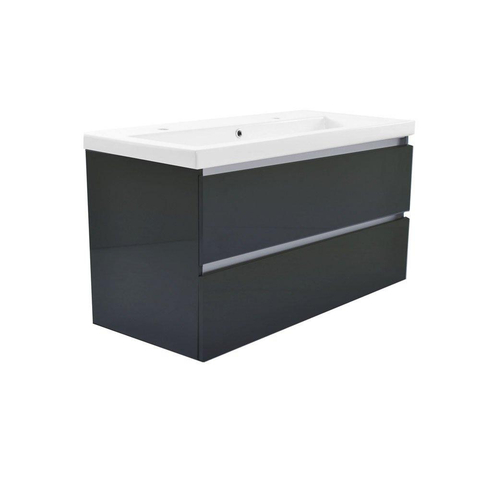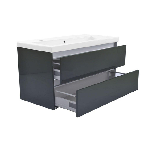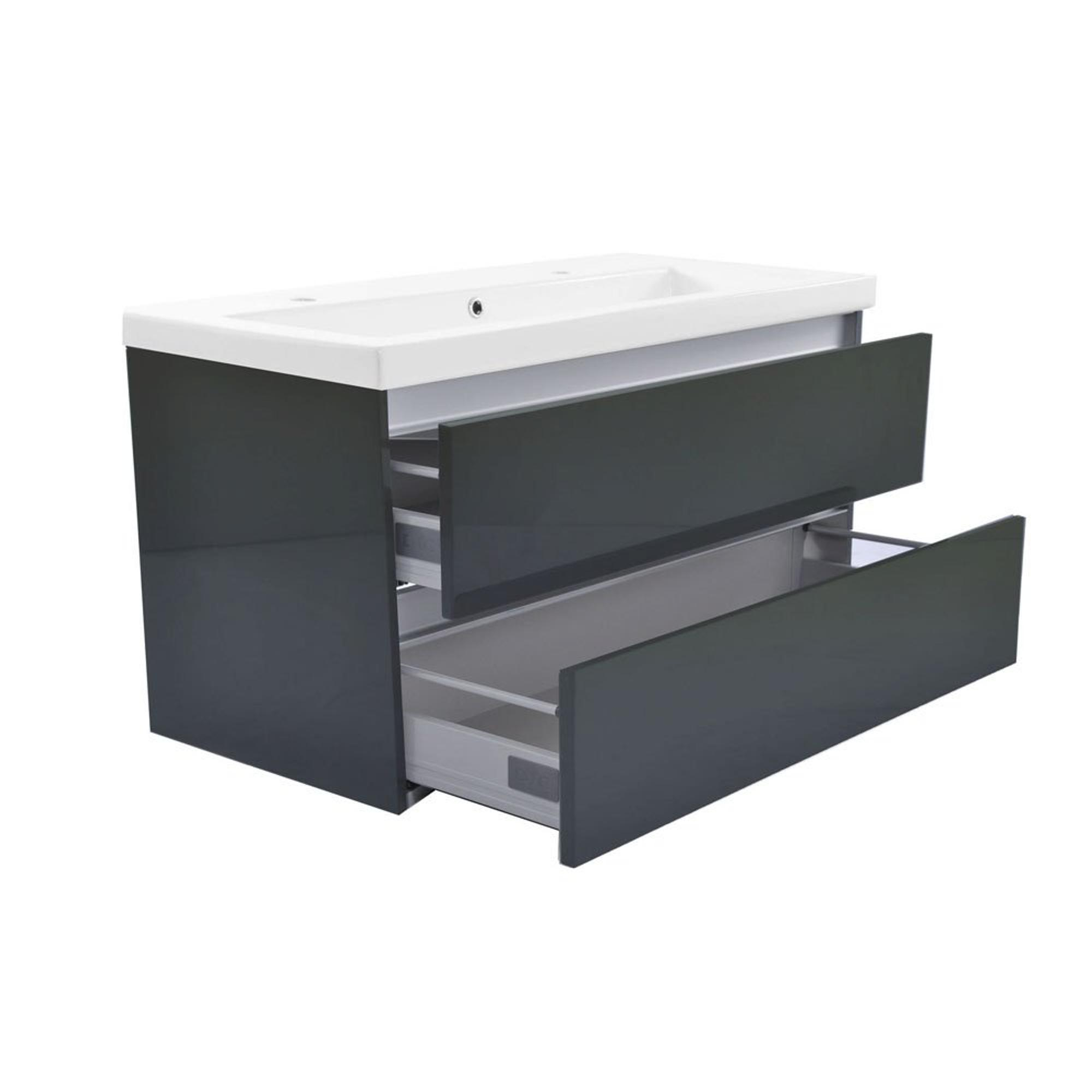 Wiesbaden Vision Meuble sous vasque avec 2 tiroirs 100 x 46 cm gris laqué brillant