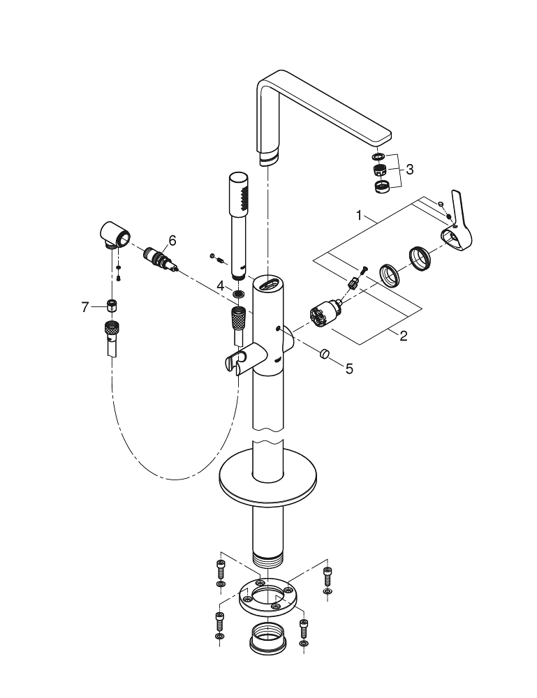 GROHE Lineare New Partie de finition pour robinet de bain sur pied avec inverseur et douchette Sena et flexible 125cm supersteel