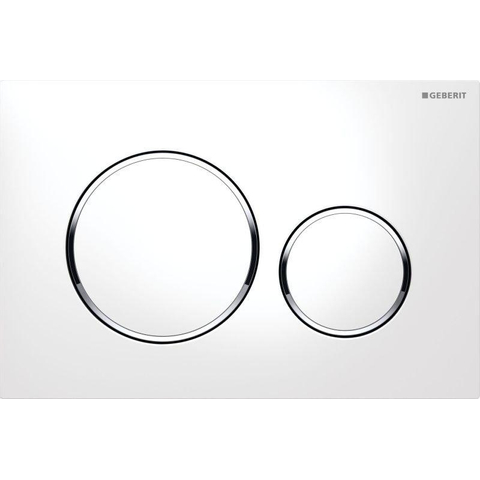 - Plaque de commande blanche Sigma20 avec double chasse et boutons ronds pour économiser l’eau