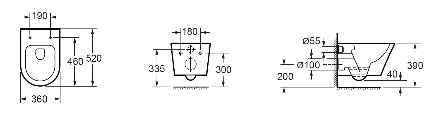 - Montage mural laissant le sol dégagé, ce qui rend le nettoyage autour et sous le WC beaucoup plus facile.