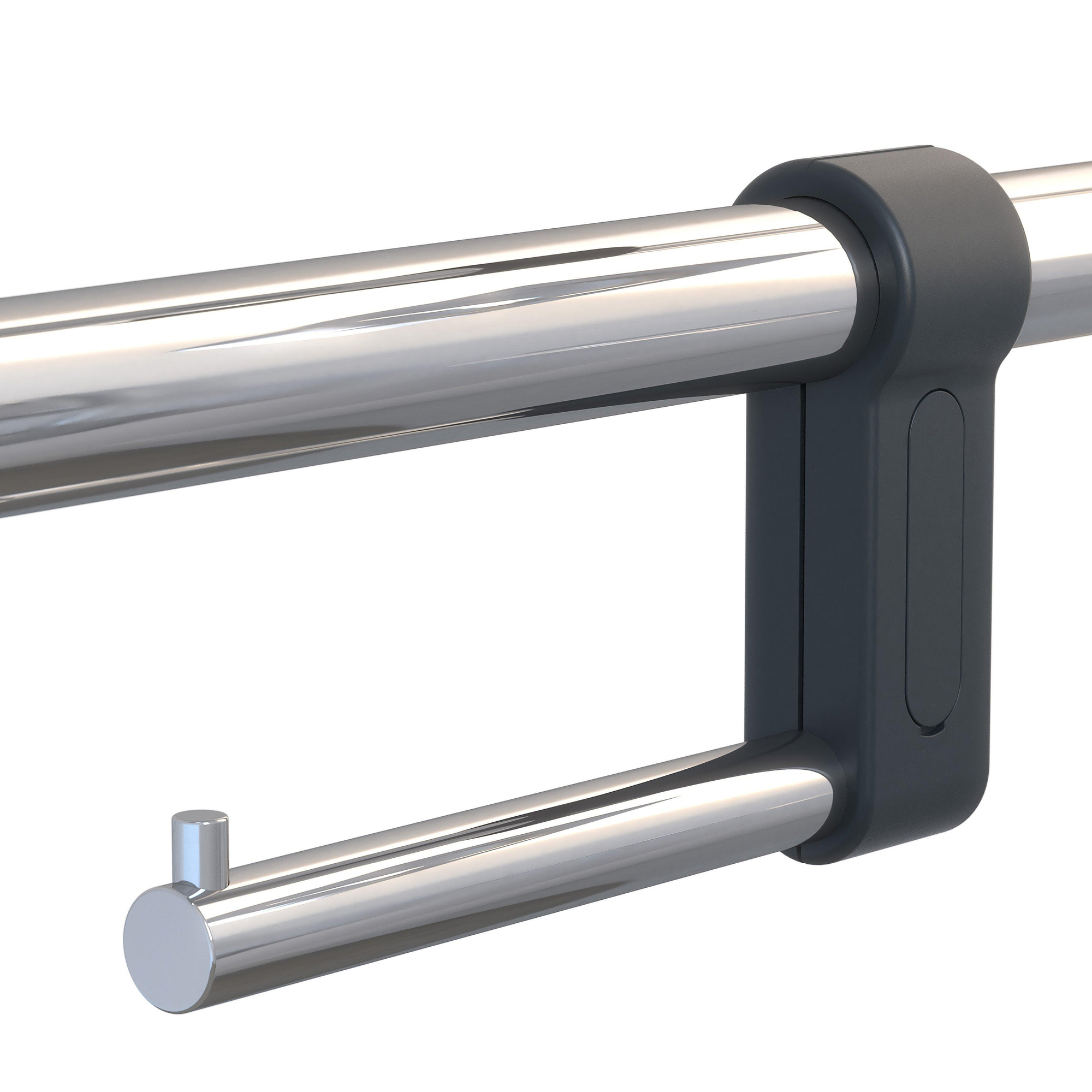Ce porte-rouleau de papier toilette pratique est spécialement conçu pour être monté sur une barre d'appui relevable, ce qui rend votre visite aux toilettes un peu plus confortable et plus sûre. Idéal dans une salle de bains de soins, une habitation adaptée à toutes les phases de la vie, une situation d’aidant proche ou dans un espace sanitaire où un soutien supplémentaire est souhaité, comme une salle de bains pour seniors ou des toilettes accessibles. Grâce à sa conception étudiée, le rouleau reste toujours à portée de main, même si vous êtes moins mobile, et l’ensemble forme une unité sobre et ordonnée. La finition chromée brillante s’accorde parfaitement avec le sanitaire moderne et se combine facilement avec d’autres accessoires. Vous ajoutez ainsi de la fonctionnalité sans faire de concessions sur le style et vous optez pour une solution réellement conçue pour un usage quotidien et intensif.